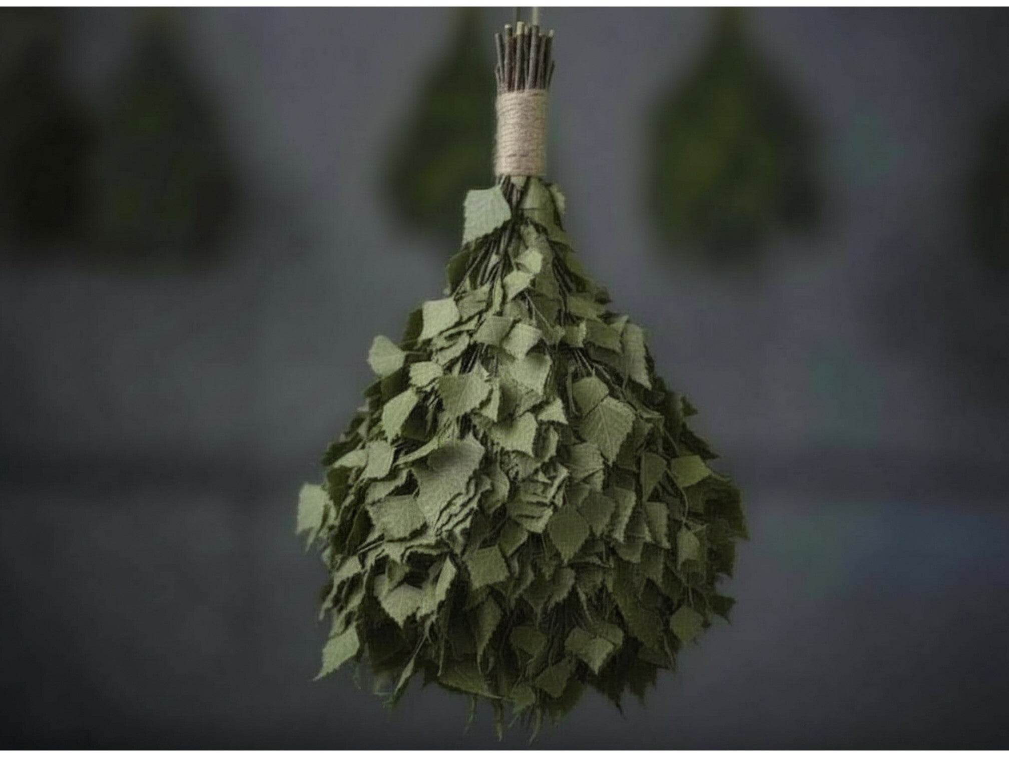 HIKOBAYUの森で手入れをする際に出る白樺の枝葉を、一本ずつ選んで束ねています。このヴィヒタは、WA・ASと同じく“森の循環”の一部から生まれるものです。