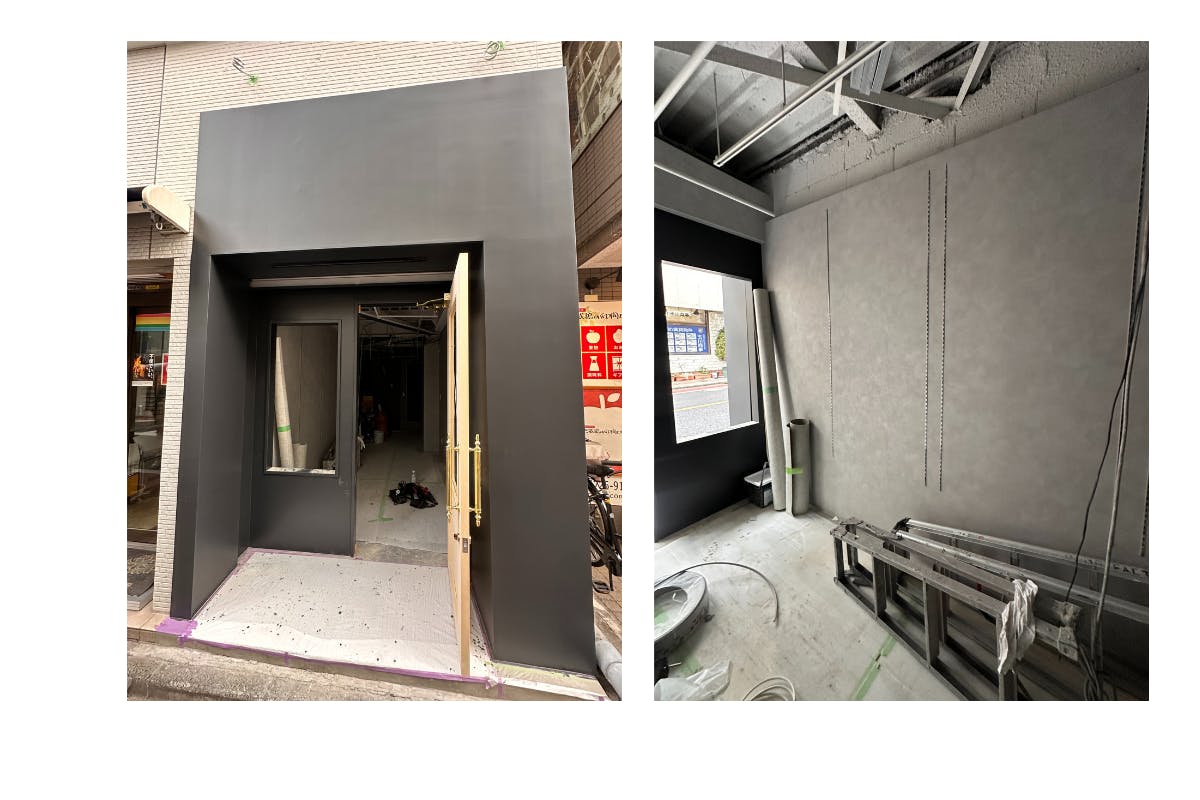 内装はグレーの壁紙が貼られていました。