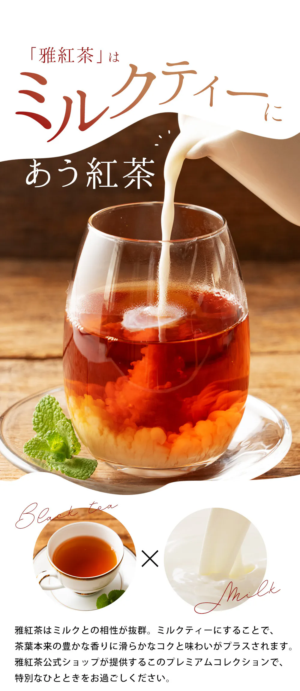 それと同時に、「雅紅茶」は、ミルクティーに最適な和紅茶を追求し、新たなミルクティー体験を提供したいと考えています。