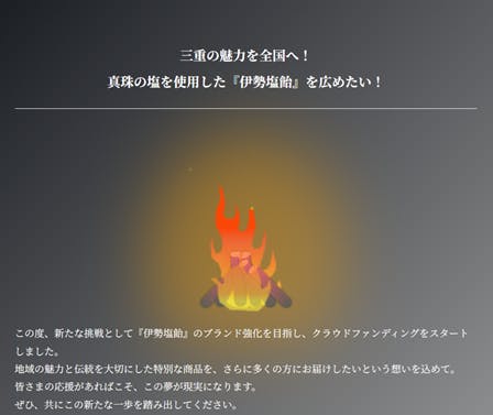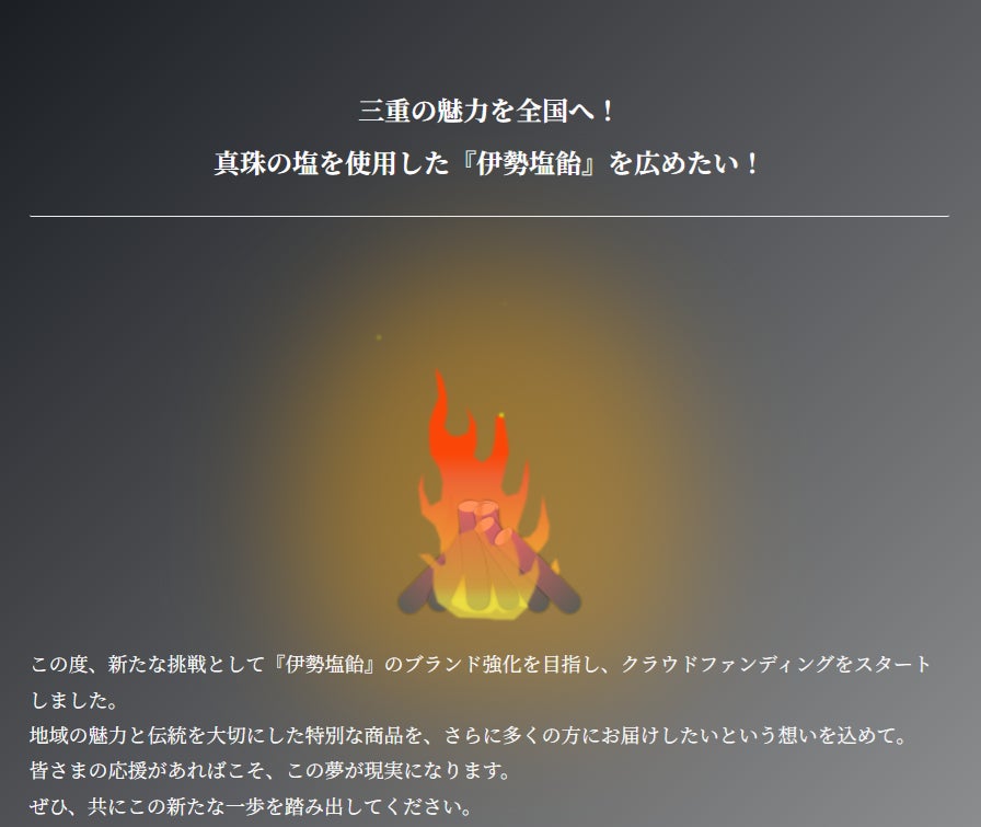 私たちの挑戦に興味を持っていただき、心より感謝申し上げます。「伊勢塩飴」は、三重の自然と伝統が凝縮された特別な一品です。このプロジェクトを通じて、皆様と共にその魅力をより多くの方々に広めていけることを心から楽しみにしております。何卒、応援を賜りますようお願い申し上げます。