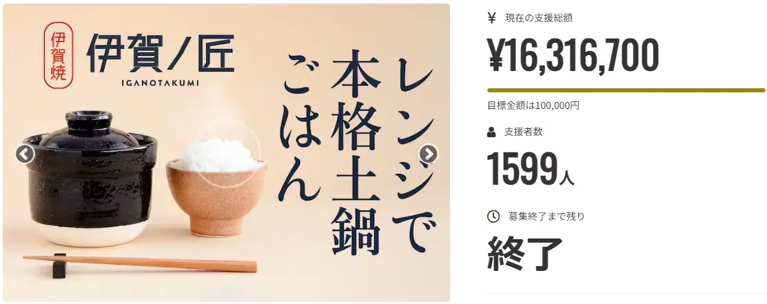 2025/04/07 10:56伊賀ノ匠CAMPFIRE アンコールプロジェクトのこり13時間です!!検討中の皆様へ『伊賀ノ匠』公式インスタグラムアカウントでは開発ストーリー、アレンジレシピ、お手入れ方法など伊賀ノ匠にまつわる色々な情報を発信しております。特にまぜごはんのレシピは大変好評いただいております。@iganotakumihttps://www.instagram.com/iganotakumiぜひ、インスタグラム( @iganotakumi )をご覧の上、ご検討ください。CAMPFIREプロジェクトへのご支援お待ちしております。 もっと見る