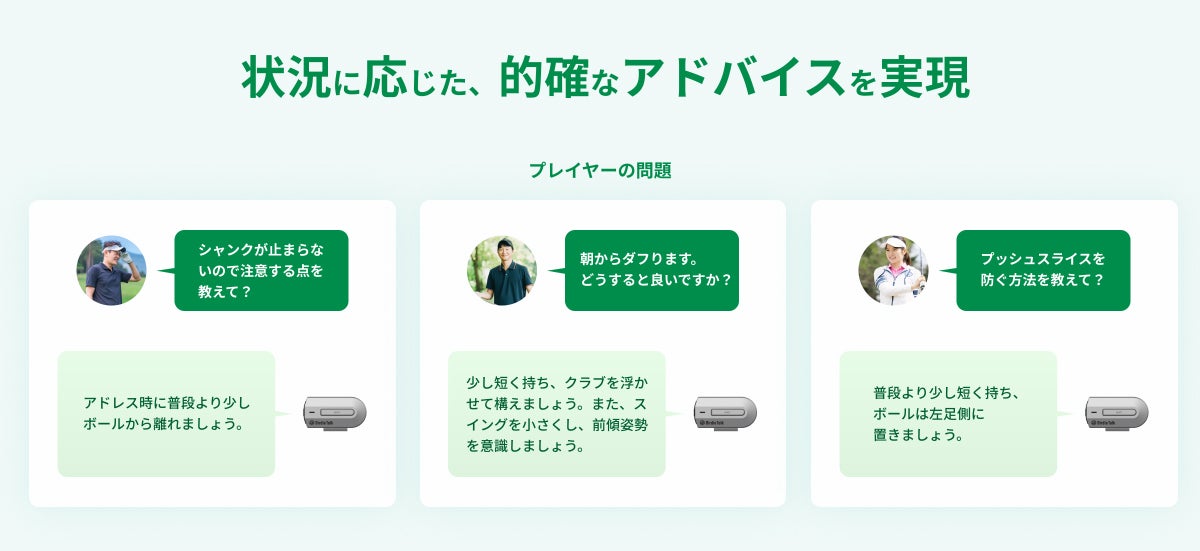 「Birdie Talk(バーディ・トーク)」は、ゴルフのラウンド中にAIがアドバイスを提供する対話型デバイスです。