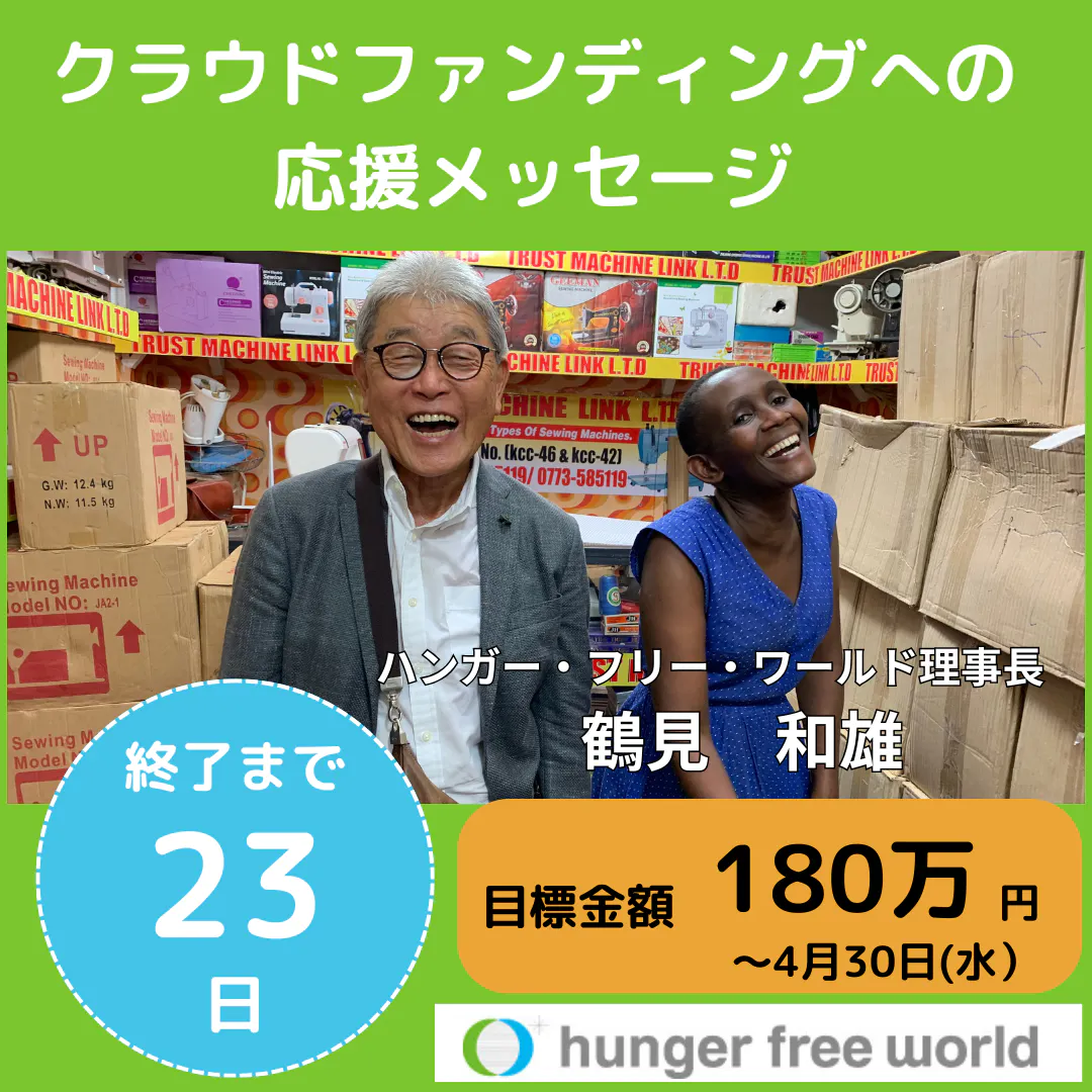 一人目は、3月20日に認定NPO法人ハンガー・フリー・ワールドの新しい理事長に就任いたしました、鶴見和雄からのメッセージです。