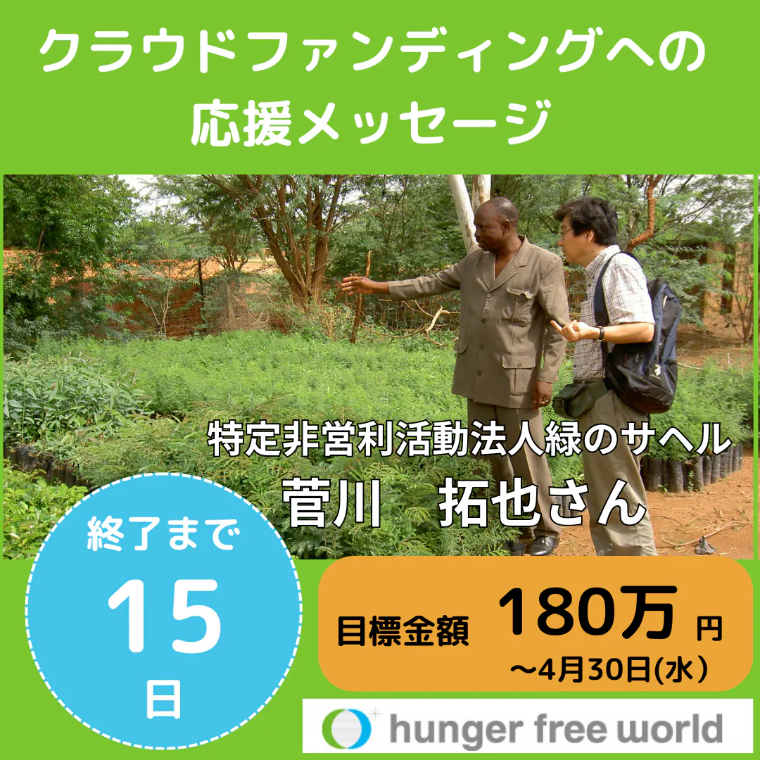 本日は日頃よりお世話になっている、特定非営利活動法人 緑のサヘル 菅川 拓也 さんからのメッセージです。