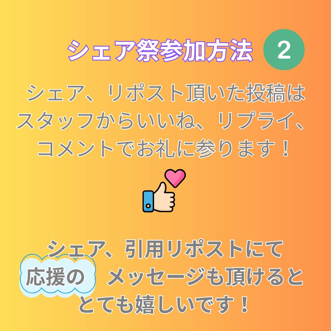 ②18時~20時の間、スタッフが巡回し、シェア、リポスト頂いた投稿にいいねとお礼のコメントをいたします。
