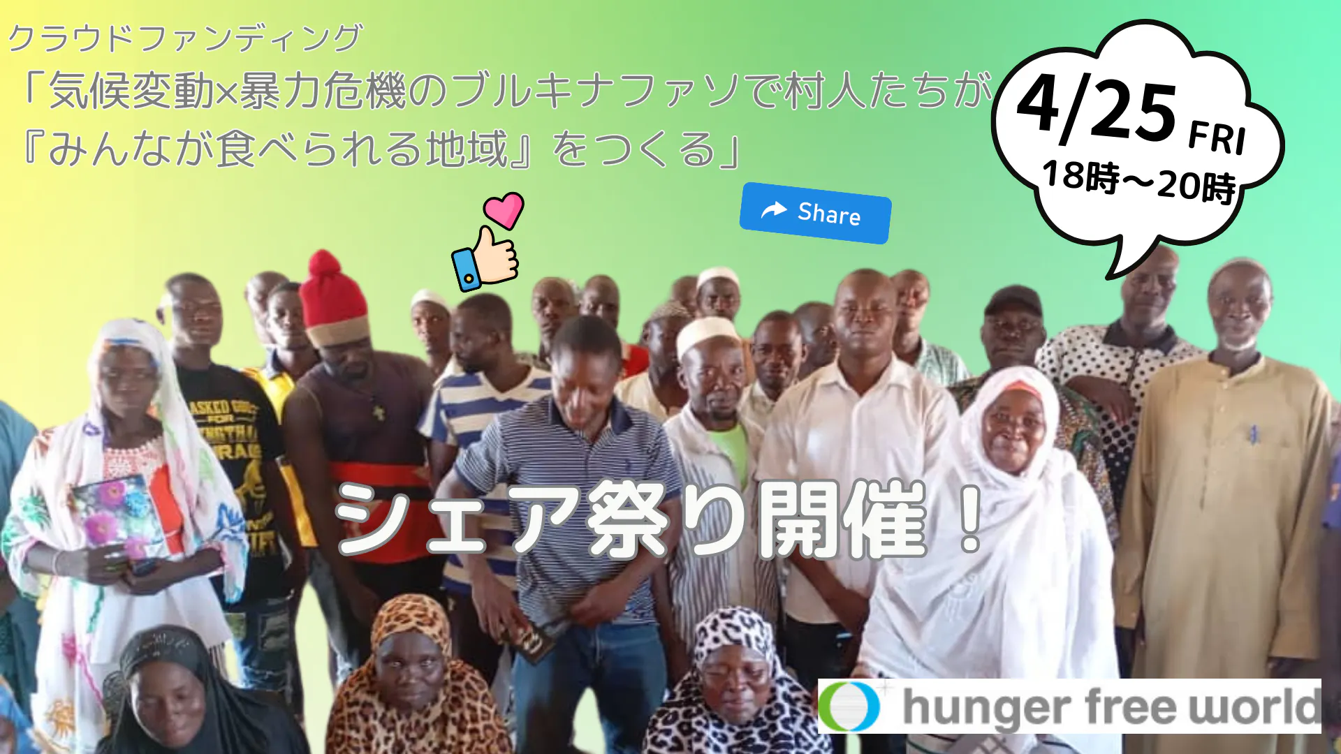 そのままシェア、リポスト頂いても良いですし、ぜひハンガー・フリー・ワールドの活動やブルキナファソへの思い、応援メッセージなどのコメントを付けて頂けると大変嬉しいです!