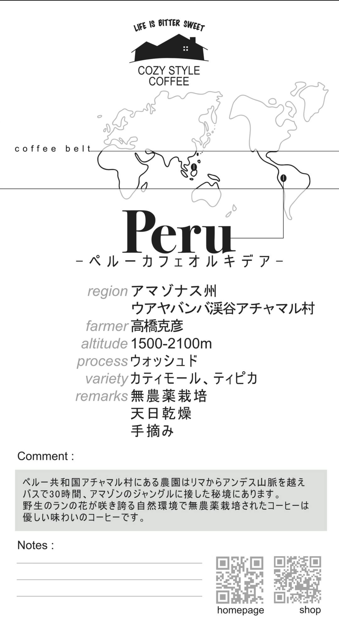 ペルーから直輸入し自家焙煎された珠玉の一杯を堪能下さい。