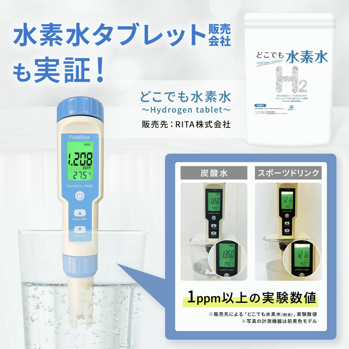 市販の水素水では満足できなかった方へ、目に見える数値とともに、高濃度水素を実感してください!