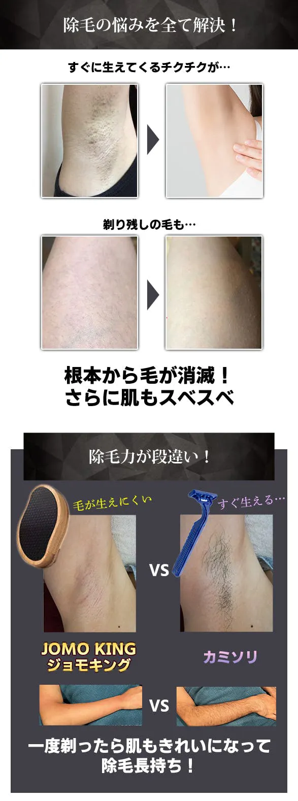 「JOMO KING」を使えば、たった数回、軽くなでるだけ。