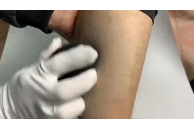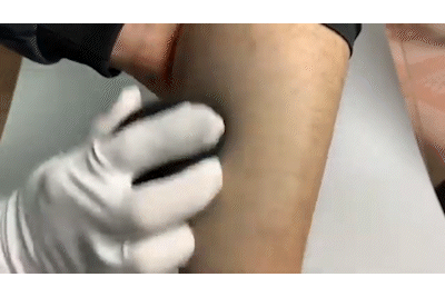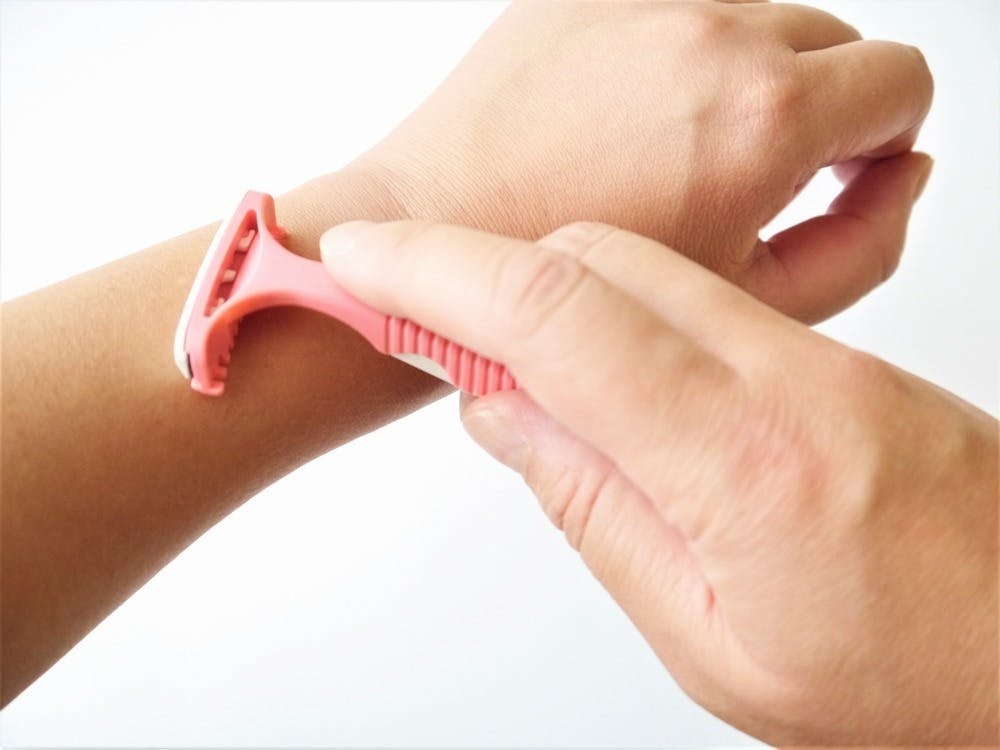 このように優しく肌の上でこするだけで簡単除毛!