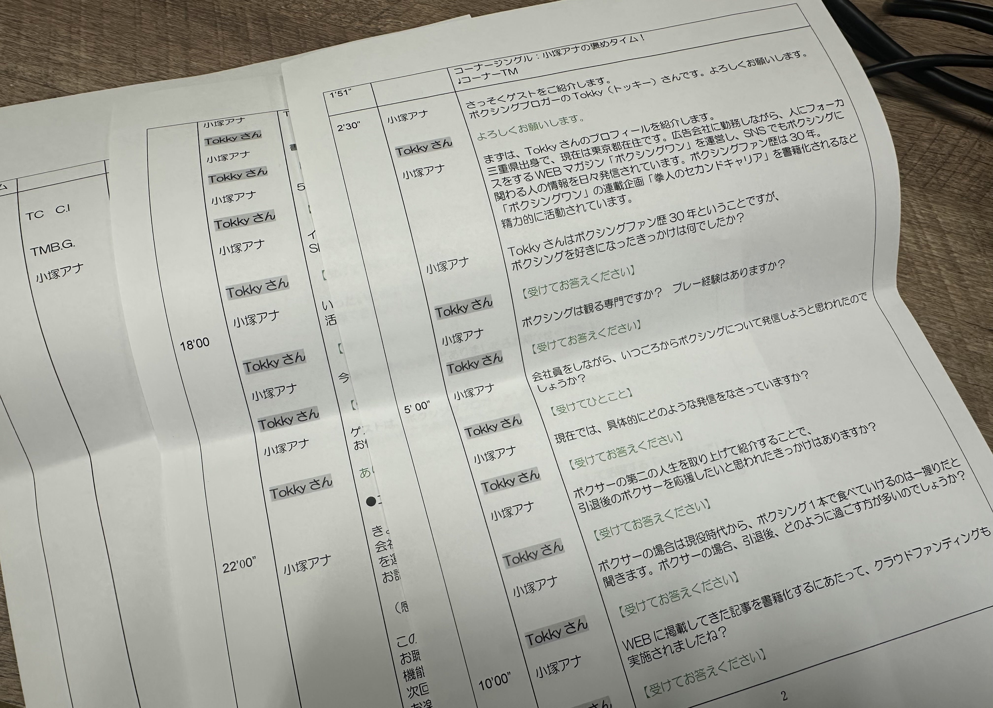 担当してくださる小塚アナはベテランで優しく挨拶して下さってリラックスして話せるなと思ったものの、いざ収録開始!となるとしっかり自分の活動を伝えたい!と思うがゆえに緊張で顔が強張っているのが分かります。ボクシングを好きになったきっかけの話は普段のボクヲタ同士での飲み会でも良く話すネタなので、話慣れてるし、聞かれ慣れてもいるんですが、聞かれ慣れてない質問に答えるのはそれはそれで新鮮です。