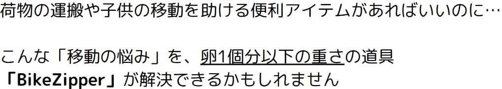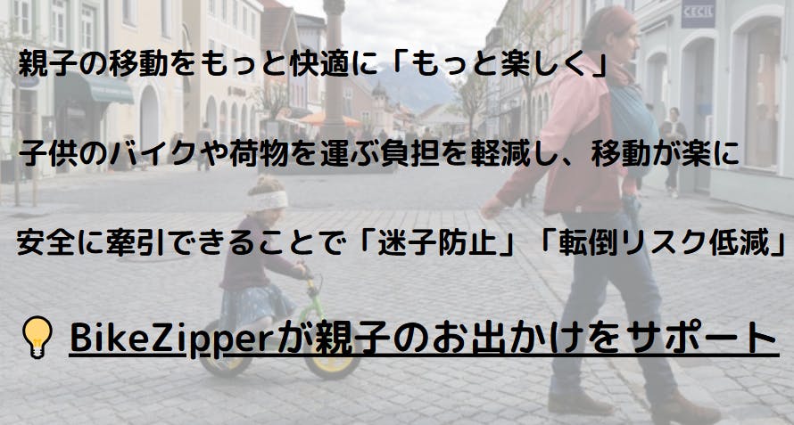 BikeZipperは、家族でバイクや自転車のお出かけの際に欠かせない新しいお供です。