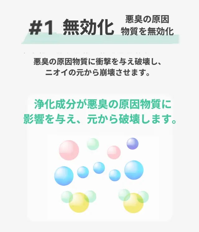 ②【自動車内試験】タバコの煙:435(最高値)→140秒間使用→80(最低値)まで減少。車種:トヨタ CHR。ボディ寸法:車長4390mm 車幅1795mm 車高1565mm ホイールベース2640mm。タバコ消臭試験は喫煙後、車内の窓を閉じた環境で行っております。