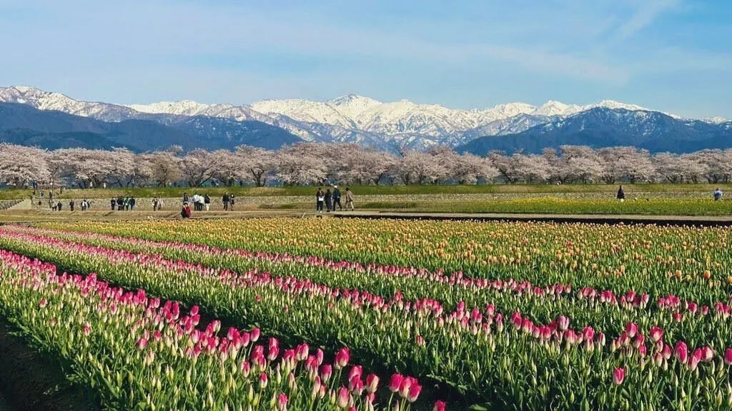当宿は、富山県の春の名所「春の四重奏」の目の前に位置しており、4月上旬の2週間で約10万人が訪れる人気スポットです。