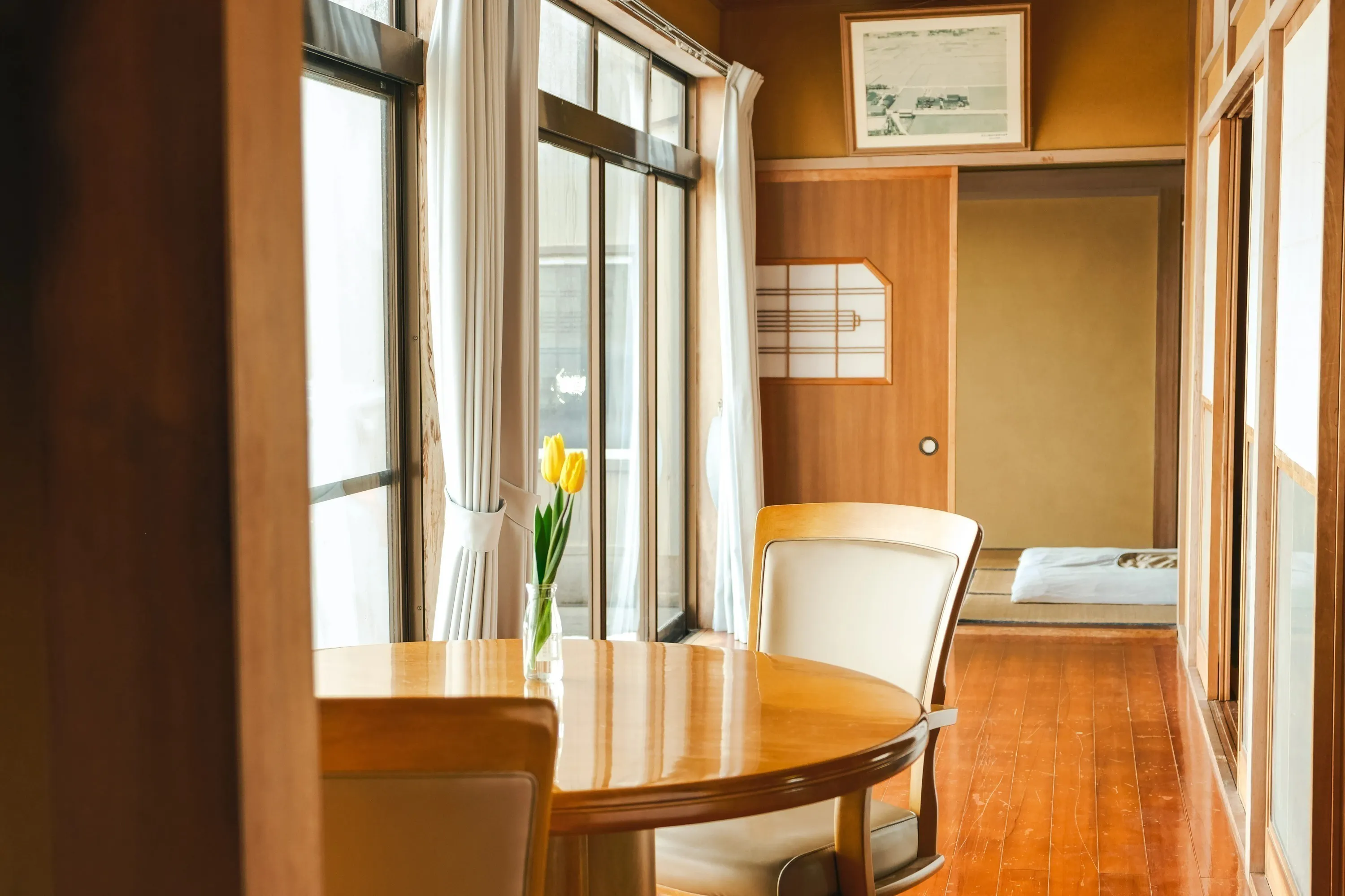 朝日町を初めて訪れた際、移住相談員の方に町を案内してもらい、田んぼの向こうにそびえる立山連峰の雄大な景色を見て「こんな場所に住めたらいいな」とつぶやきました。すると、「あの家がもうすぐ空き家になるから住めるよ」と指差されたのが、現在の住まいであり、宿となる築45年の民家でした。