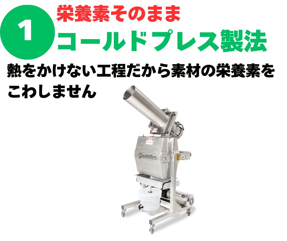 ■熱をかけないコールドプレス製法だから食材の栄養素がそのままにとれる