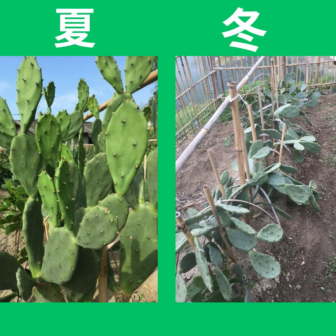 サボテンジュースの原料、ウチワサボテンは晴れの国岡山の畑で栽培しています。夏は太陽の日を浴びてぐんぐん大きく育ちますが、寒い冬は写真のように