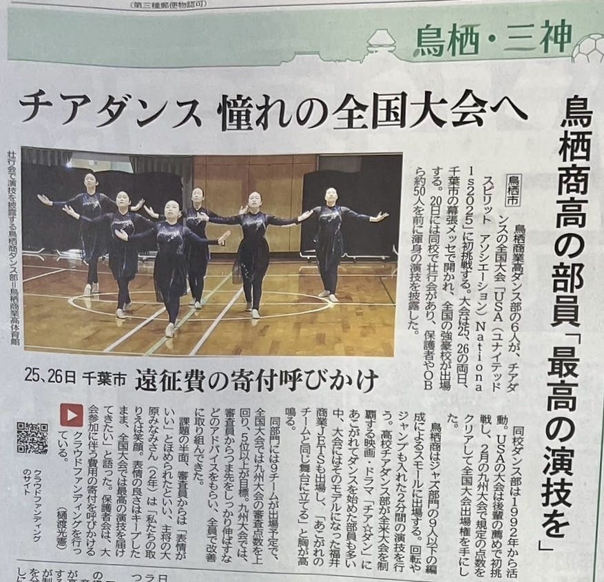 この度、私たちダンス部の全国大会出場に向けた活動が「佐賀新聞」に掲載されました。