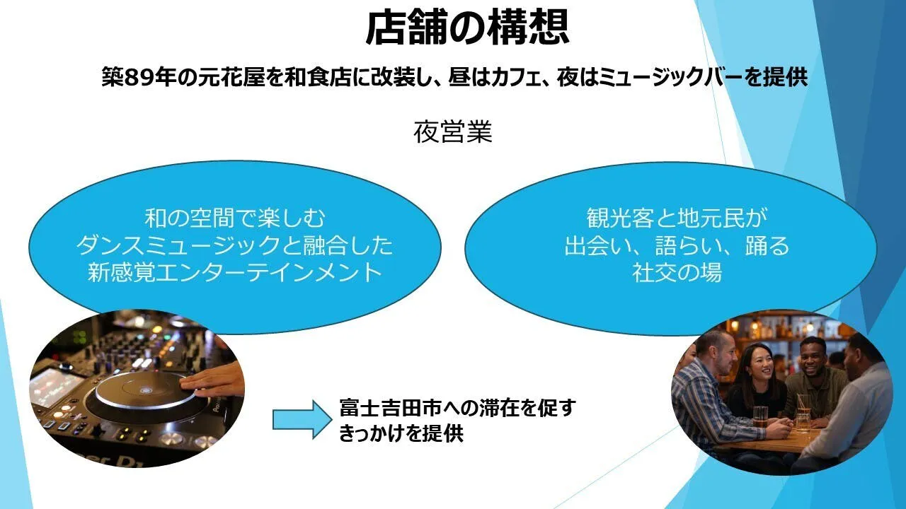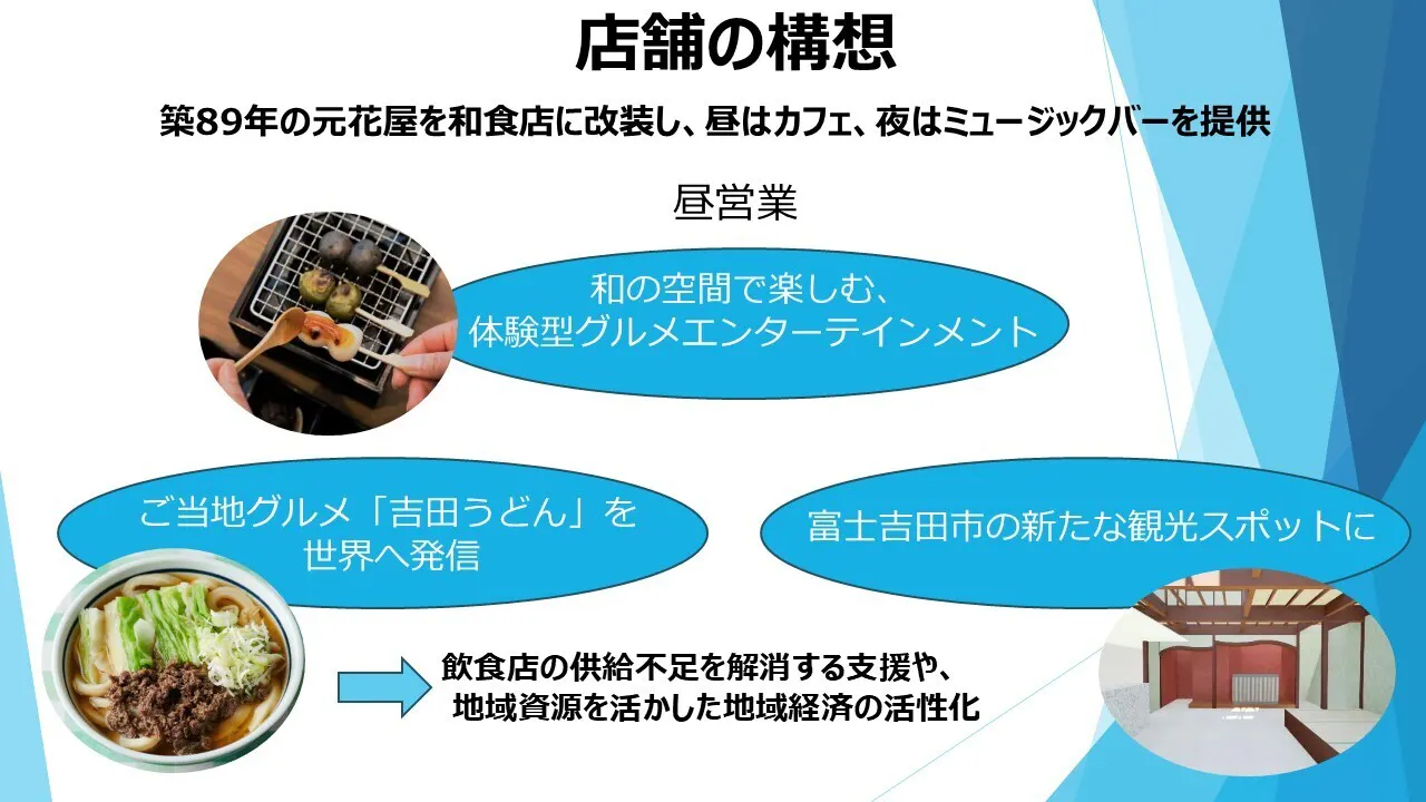 このプロジェクトを通じて、富士吉田を訪れる外国人観光客に、日本の伝統的な食文化と現代的なアプローチを織り交ぜた体験を提供したいと考えています。