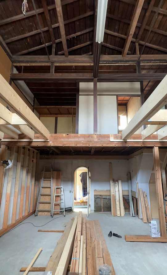 内装や外装のDIYが一段落し、現在は工務店さんによる本格工事が進んでいます。
