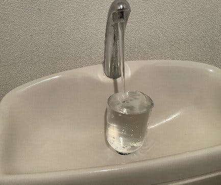 4.水を流すとタンクにセットしてあるユリサポに水が流れ徐々に満たして上部からあふれ出ます。