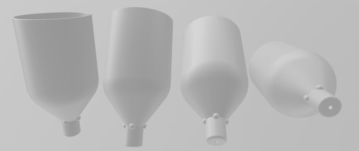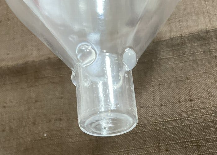 5.あふれた水はボトルネック根元の突起をつたい流れ、センターに空いた2㎜の穴からと共にタンクへ流れユリサポは洗浄されます。