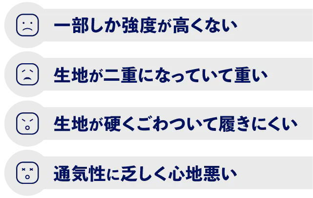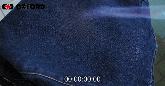 デニム生地にパラシュートにも使われるポリアミド糸を織り込んでいます。時速70kmの耐摩耗試験に合格し、CE*AA*を取得。その実力が確認されています。摩擦しても穴が開きにくく、熱にも強いです。