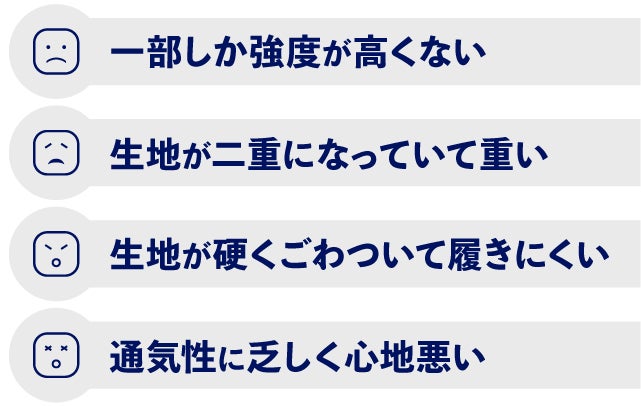 プロのライダー向けのプロテクション性能を持ちながら、伸びて履きやすく、軽量なバイカー用デニムパンツ「スーパーストレッチジーンズ」生地全面CE*AA*を取得している独自素材アーマライトをシングルレイヤーで使用。強さ・軽さ・見た目の良さを同時に実現しました。