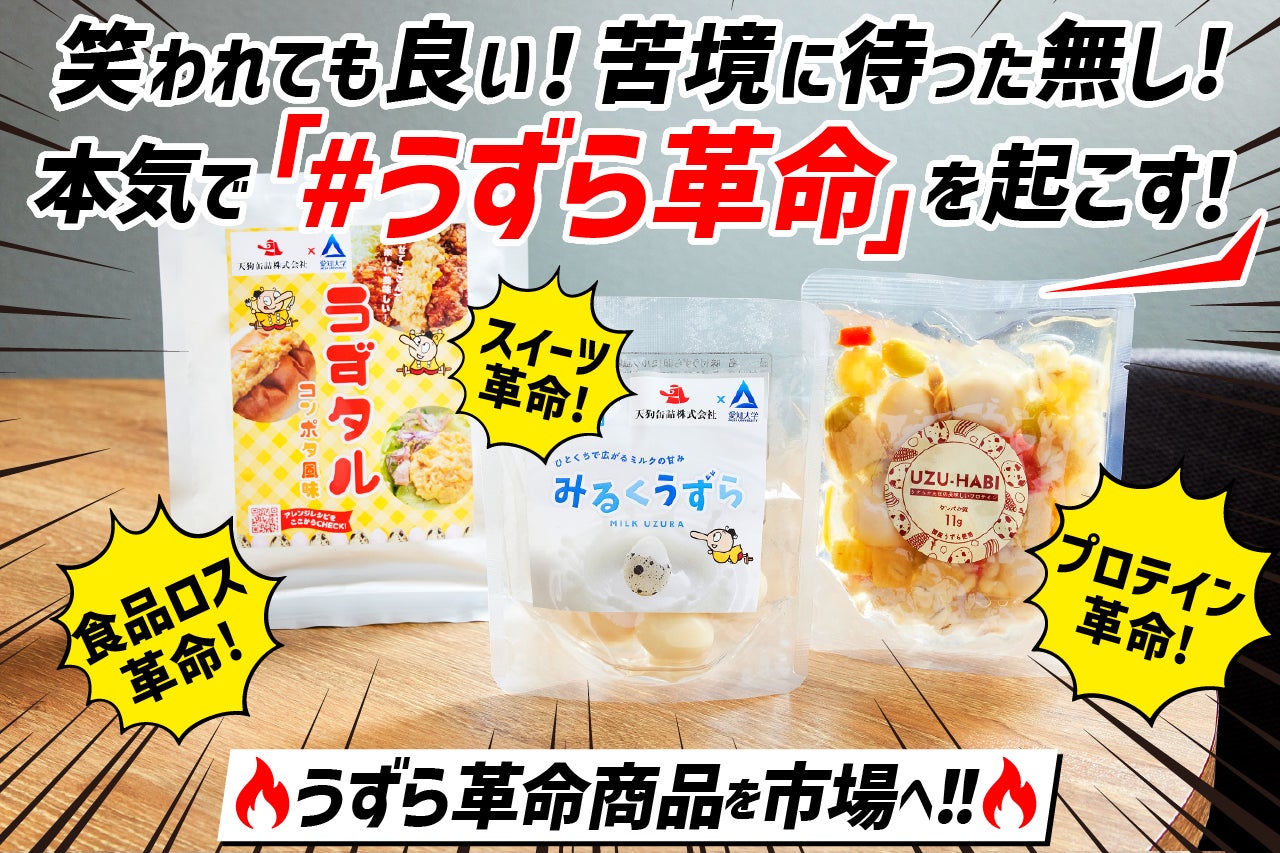 今回のプロジェクトは、うずら卵業界の苦境がまだまだ続く状況の中、立ち止まることはせず、積極的な商品開発、市場開拓に努めるべく、前回のUZU-HABIを含めた3新商品を引っ提げて「#うずら革命」を起こすべく、チャレンジする事に決めました。