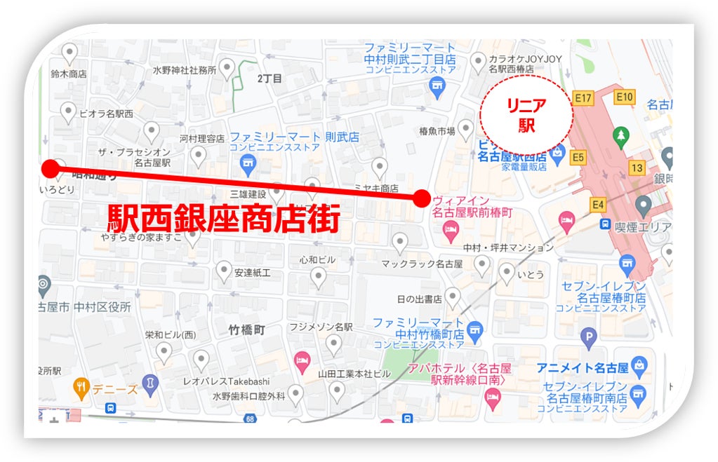 名古屋市中村区竹橋町16-14(名古屋駅太閤口<西口>から徒歩約5分)