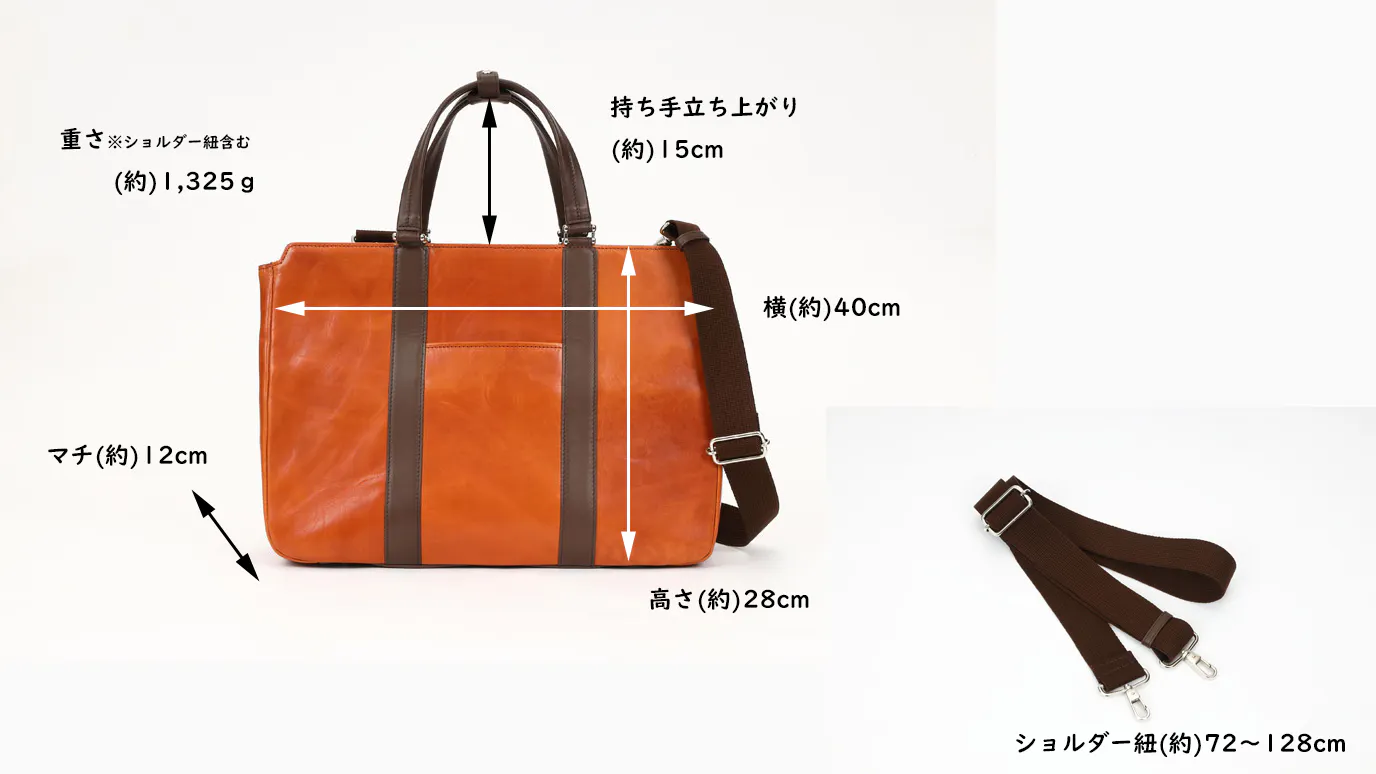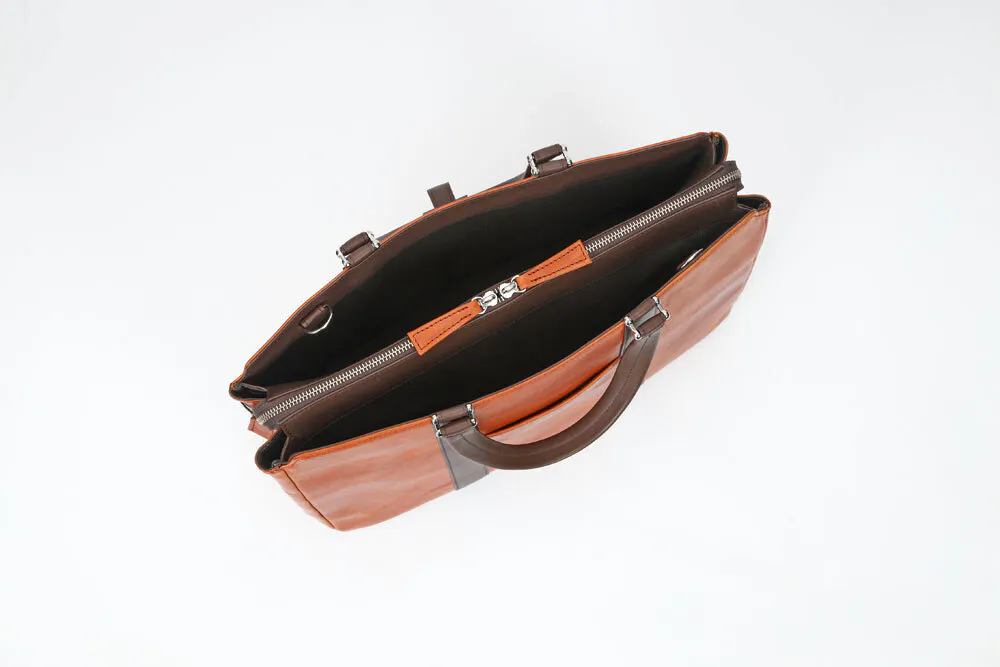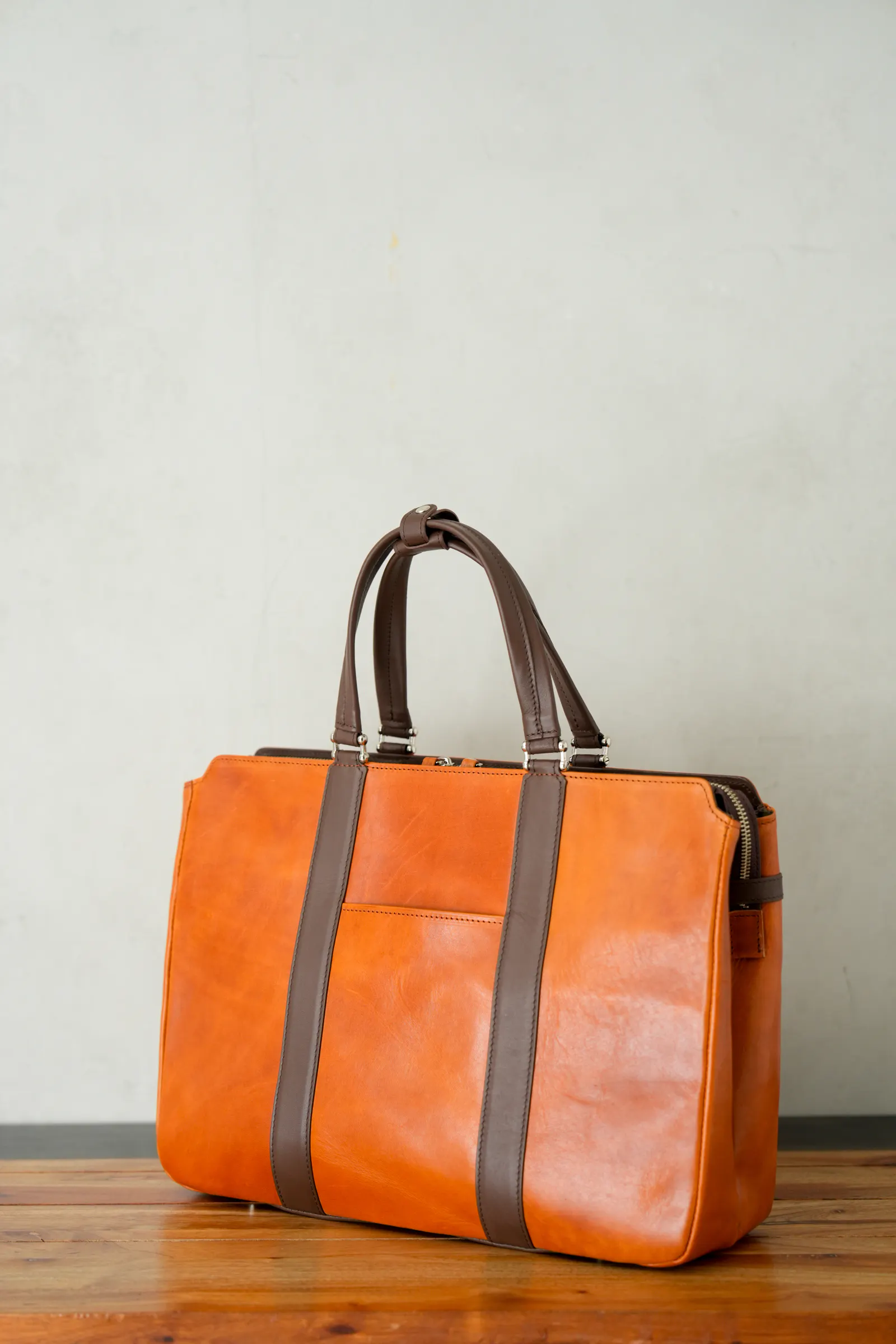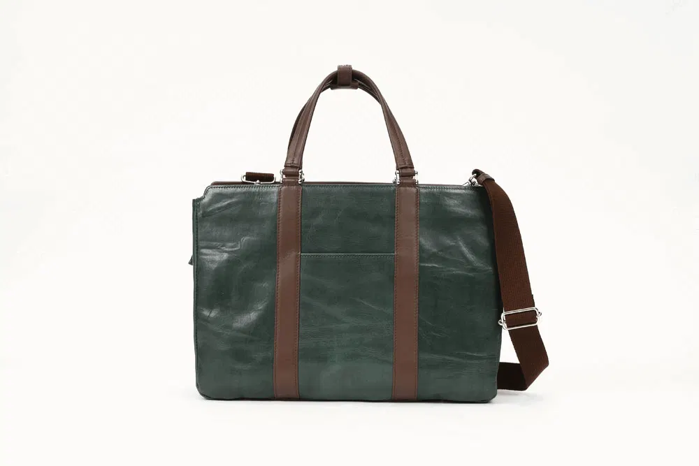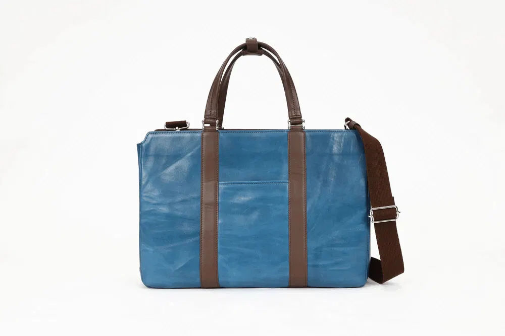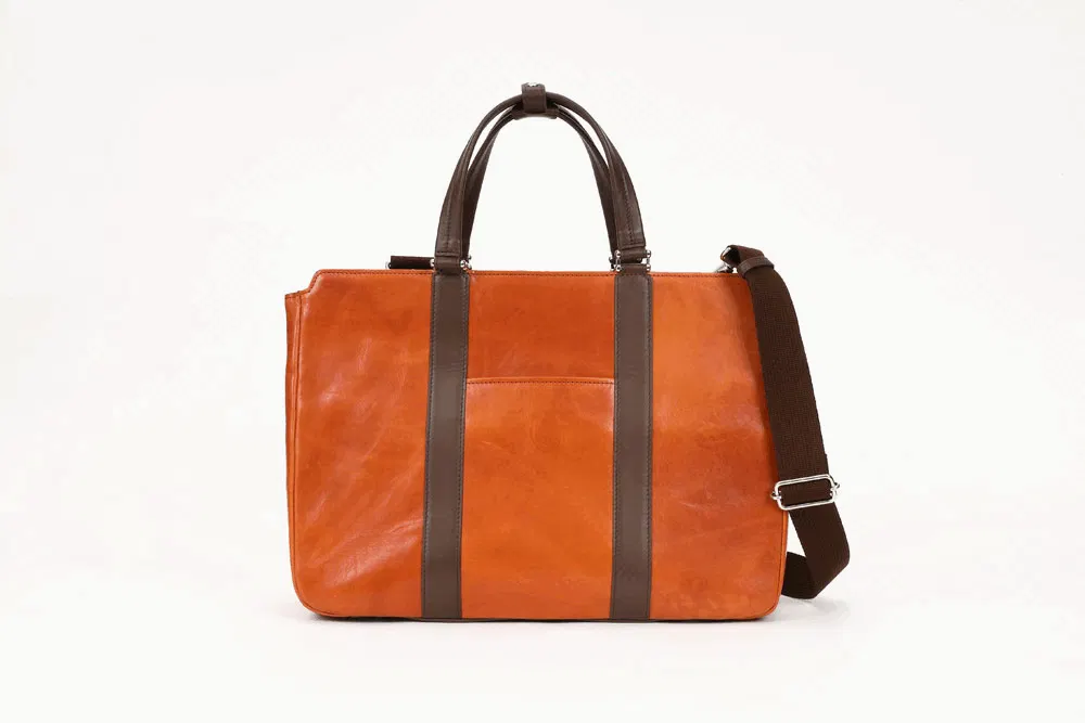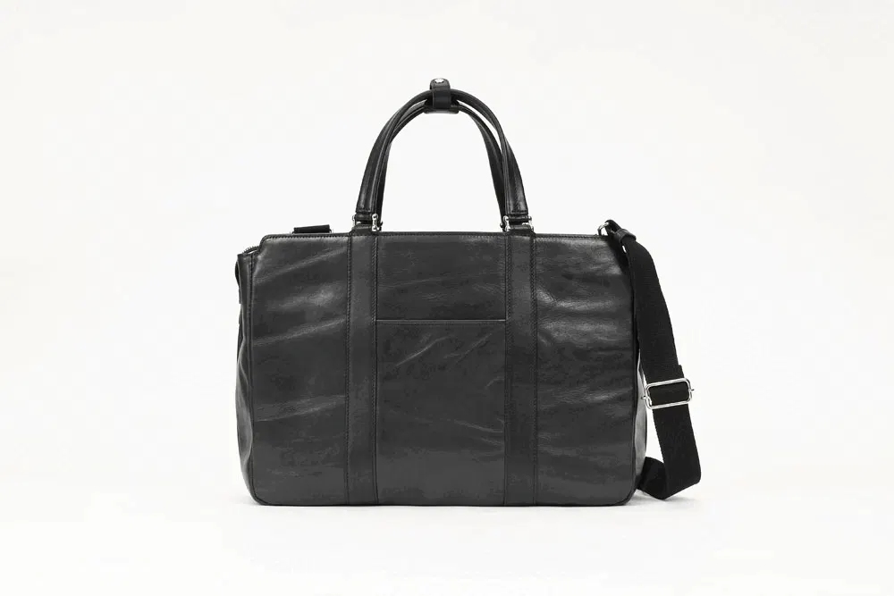 一般的なビジネスバッグといえばナイロン製がほとんどで今や百貨店やセレクトショップでもなかなか牛革製のものを見ることが少なくなりました。今回のバッグは素材にもこだわり、上品なだけでなく、タフな雰囲気も兼ね備えました。