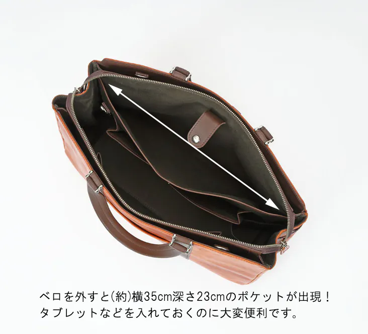 A4ファイルが入るポケットが両側にあるので取り出したい書類などメインファスナーを開けなくなくても出し入れ可能です。