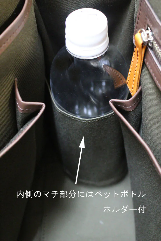 裏地は上品なカーキ色の綿生地で統一しました。