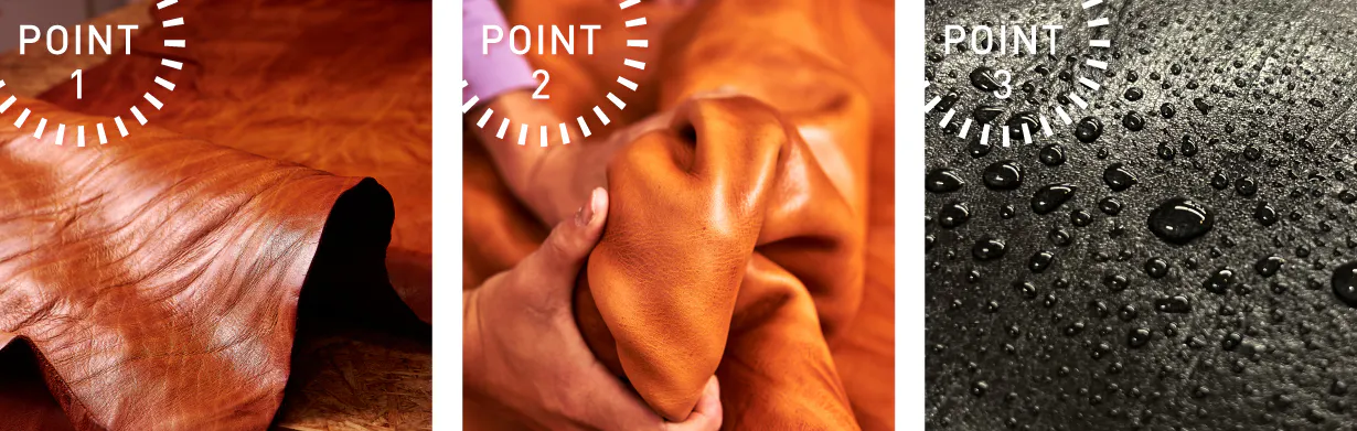 POINT1:すべての革において表情がすべて異なる為一つとして同じものがない。