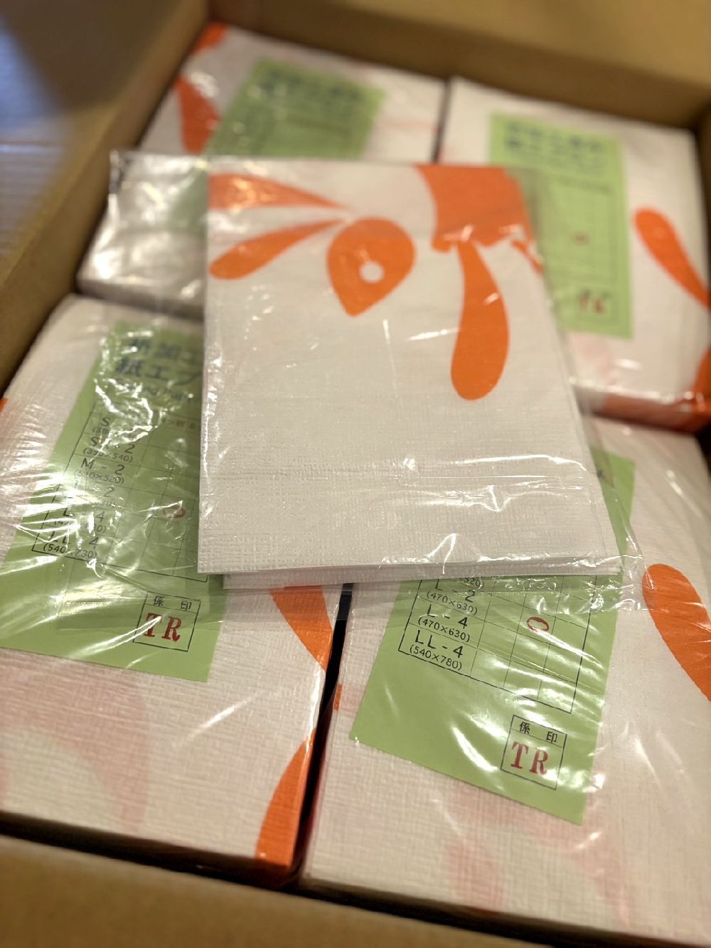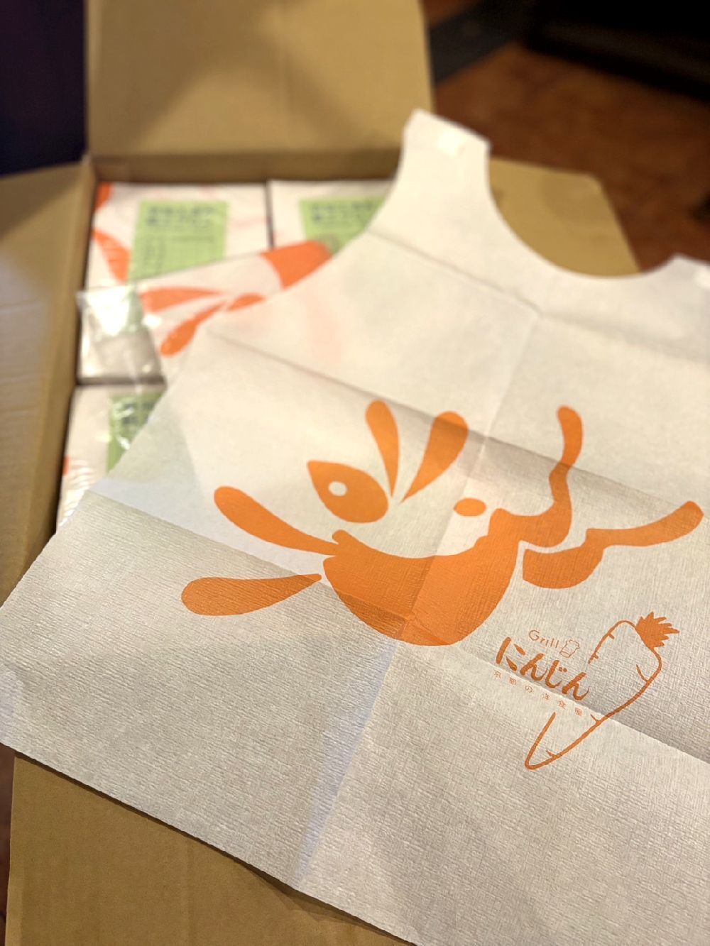 当店でも紙エプロンをご利用いただけるようにメニューに表記しております。