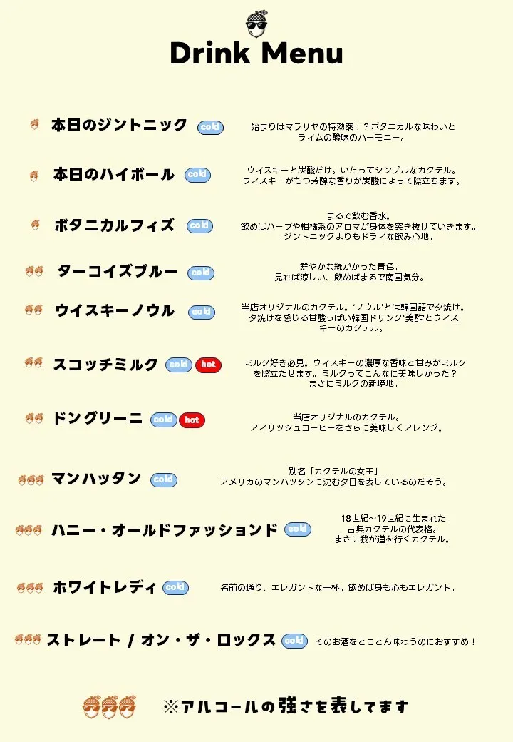 ※考案中のカクテルドリンクメニュー(研究や準備によってまだまだ変更されます!僕達はこのプロジェクトがやりたくてやりたくてたまらないです!この僕達の夢を現実の世界で''形''にするために、僕達の全エネルギーをかけて挑みますので、どうかご支援をよろしくお願いします。ご支援頂いた方への僕達ができる精一杯のリターン(返礼品)も用意させて頂きました!お時間ない方は、ぜひリターン(返礼品)だけでもご覧頂き、ご支援のご検討いただけますと幸いです!