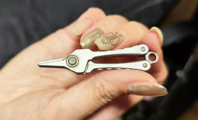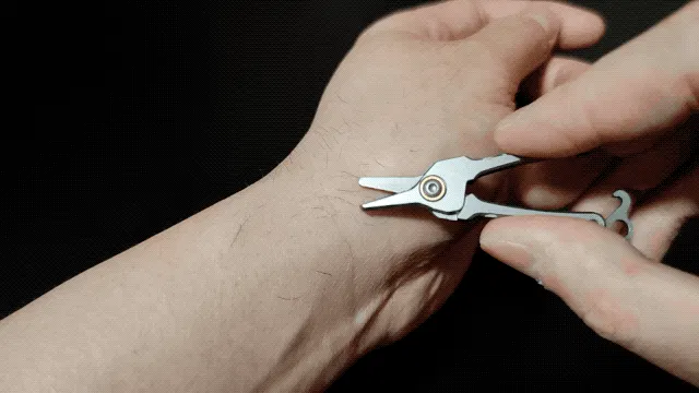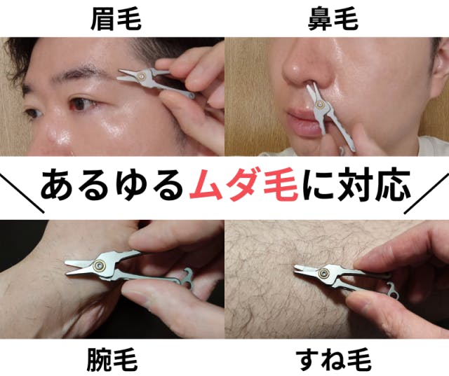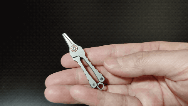 A:わずか7gのミニサイズのハサミです。チタンで作られているため、軽量さと頑丈さを併せ持ちます。普段鼻毛などの無駄毛を簡単にどこでも一秒カットできるほか、袋の開封や紐の切断など、幅広い日常のシーンで活躍します。