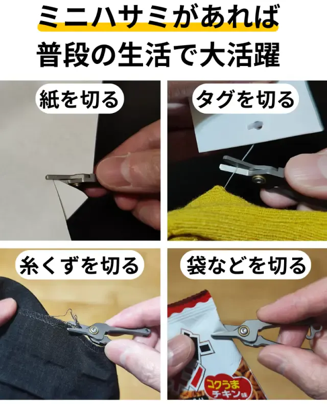 重量わずか7gのミニハサミは、キーホルダーに付けて持ち運びが便利で、普段の生活で大活躍するはずです。