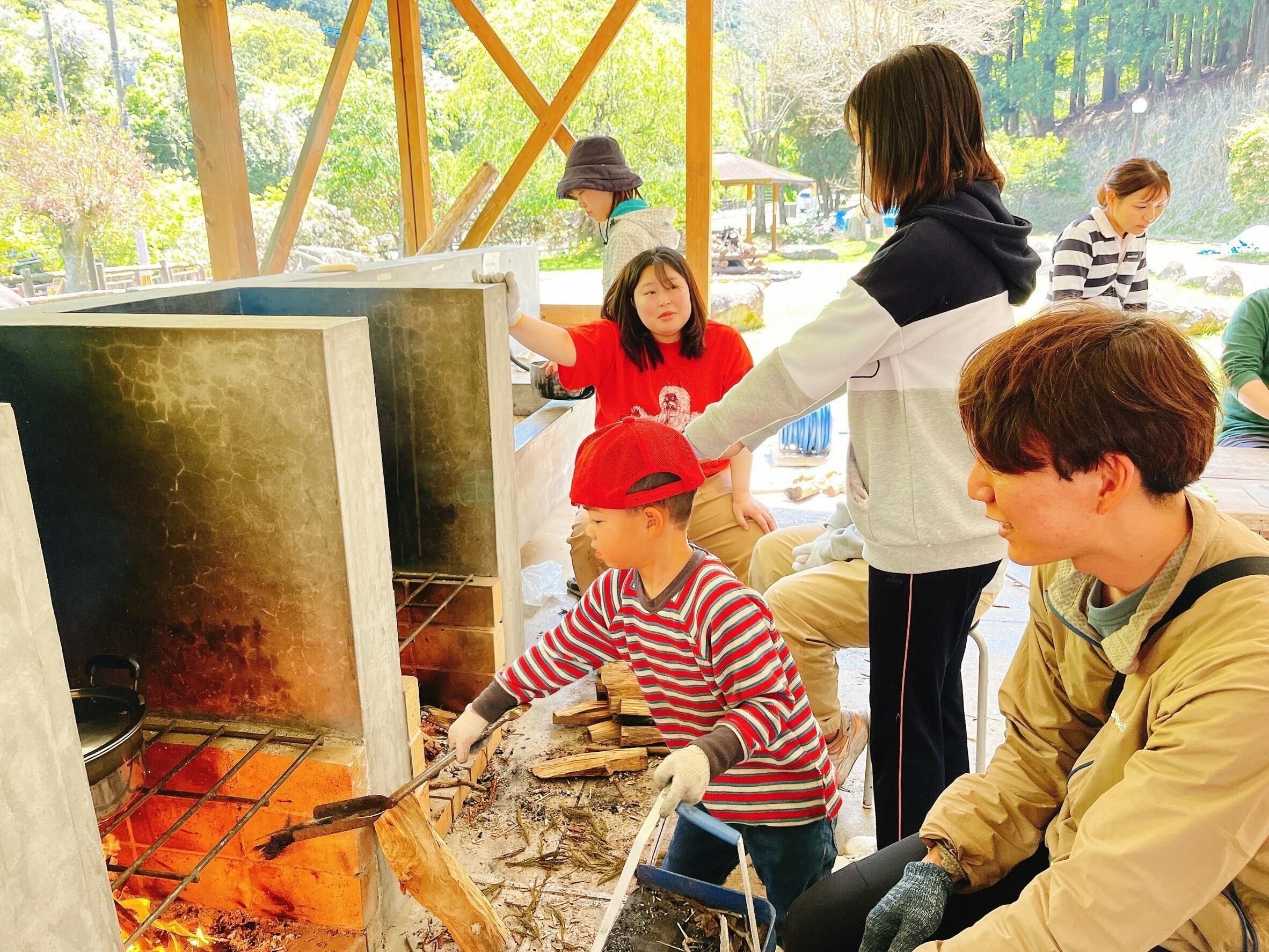 今回キャンプが初めての子もおり、薪割りや火おこしなど経験者が優しくレクチャーする場面も!薪割職人がたくさん誕生しました笑