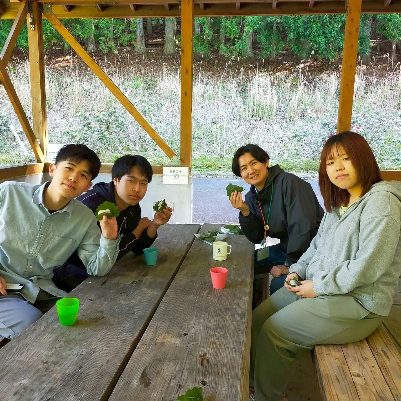 おやつは柏餅と八女茶!あんこを包むのが難しかったけど、自分で作ったおやつは格別♪