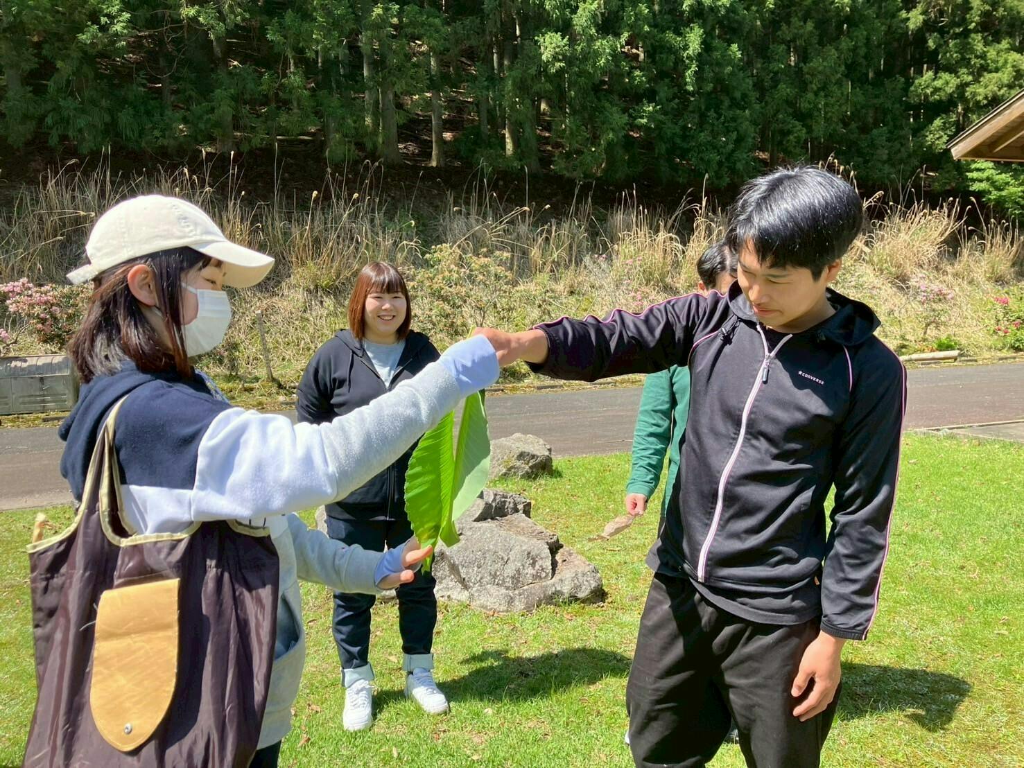 その後のウォークラリーでは、班に分かれ①一番大きな葉っぱ②面白いorかわいいorすてきな石をそれぞれ探し、絶景ポイントで写真を撮ってくるというミッションの元、それぞれが交流会を深めました!
