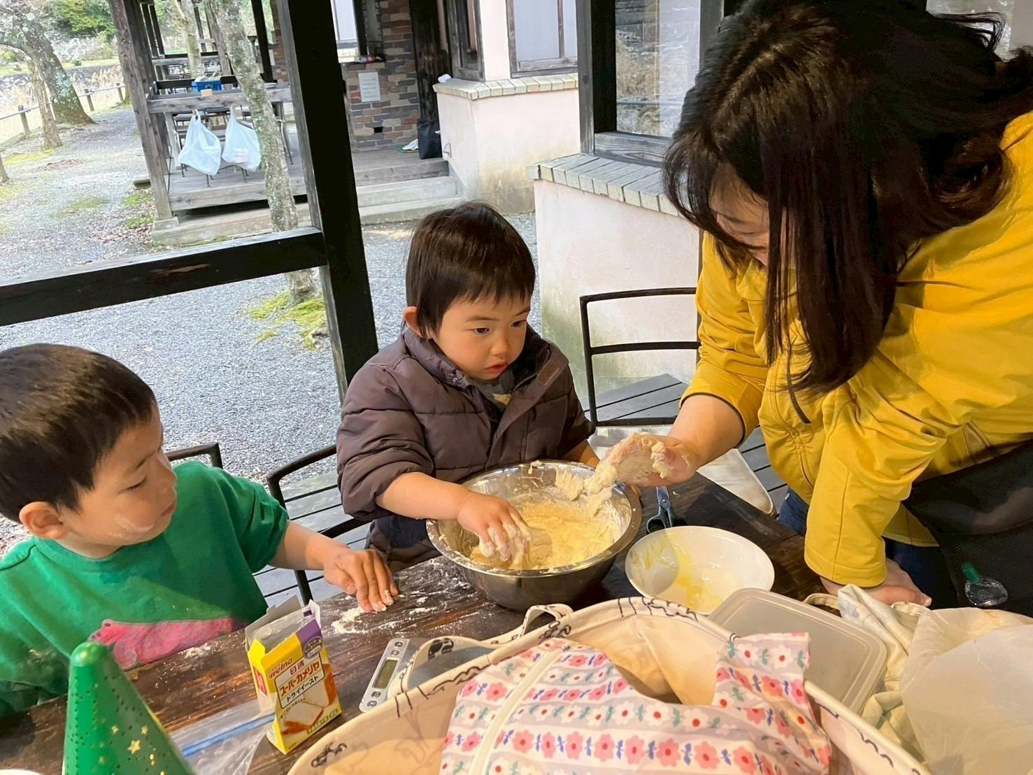 • 5月3〜5日に福岡県のじゃぶち森のビレッジで、「つながるキャンプ」を行いました!このキャンプは年齢も住んでいる場所も仕事も何もかも違うメンバーで集まって交流したいという思いから生まれました。その思いの通り、九州だけでなく、中国地方、関西、関東からも参加者が集まりました!そしてなんと最年少は0歳11ヶ月!幼稚園生、高校生の参加者もありました♪1日目は、バスで約2時間かけてキャンプ場へ…車内はバスレクで大盛り上がり!「あ」で始まって「ん」で終わるなるべく長い言葉を探そう!というゲーム等たくさんのゲームをしました!ついてからはアイスブレイクも兼ねて、「トークフォークダンス」を行い、順番に1対1で1分間ずつのお話をしました。始めは恥ずかしそうだったみんなも次第に打ち解け、1分が短く感じてきたようでした。今回キャンプが初めての子もおり、薪割りや火おこしなど経験者が優しくレクチャーする場面も!薪割職人がたくさん誕生しました笑そして夜はバーベキュー!マジックソルトにつけた手羽元がジューシーで最高でした〜2日目の朝食はおにぎりと味噌汁!ほっと一息ついたあとは、朝の体操!まさかのAPTをみんなで踊りました!その後のウォークラリーでは、班に分かれ①一番大きな葉っぱ②面白いorかわいいorすてきな石をそれぞれ探し、絶景ポイントで写真を撮ってくるというミッションの元、それぞれが交流会を深めました!お腹もペコペコになった頃、昼ごはん!みんなで開催地福岡のご当地料理であるかしわ飯をつくりました!火起こしが初体験の参加者も多かったですが、気がつくと既に火のトリコに…♡火バサミをぎゅっと握りしめ、火と格闘していたのでした。そして、クラフトのお時間!粘土やビーズなどを使って、オリジナルの額縁を作ろう!ということで、みんなの才能が爆発しておりました!!おやつは柏餅と八女茶!あんこを包むのが難しかったけど、自分で作ったおやつは格別♪晩御飯は餃子と塩焼きそば!!いただきますの直後から、「うまっ!」「おいしい〜!」の声がとまりませんでした!美味しさを共有できるのって最高だー!!そして、みんな楽しみにしていたキャンプファイヤー!みんなで歌って踊って、子どもも大人もはじけました!!2日目の最後は…なんとキャンプバー焚き火に照らされながら、ワイングラスに好きな飲み物とアイスを入れて楽しみました♪3日目の朝ごはんはたい焼き!!中身はアンコではなく、ハムエッグとハンバーグチーズ!もうこれが美味しいのなんの!!コーヒーも淹れて、最後の朝を楽しみました!今回、たくさんの方のご支援や応援があってのキャンプ開催ができたので、メンバー一同改めて感謝の気持ちでいっぱいです。以下は、代表テヨンからの言葉です。私はこの3日目で、たくさんの感情と出会いました。初めての人と会うことのドキドキ、少しずつ仲良くなっていくことへのワクワク、知らない世界を知ることへのキラキラした気持ち、そして「仲間」ができるほっこりした気持ち。そして、不思議な気持ちにもなりました。このキャンプはみんなの交流を目的に企画したキャンプ。もちろん、このつながりが続いていくことはすごくいいことなのです。でも未来につながっていっても、いかなくてもいいと思いました。ただみんなでご飯を食べ、笑い合い、つながったこの一瞬が、未来につながっていくかなど関係なく、人生において最も輝かしいものの一つなんじゃないかなとふと心に湧いてきました。日々生きていると、利害や様々な立場、これからのことを考えざるを得ないような気がしています。でも、「この一瞬」のことだけ考えることができたあの体験は生涯忘れることはないなと思います。また、解散式では、一人一言お話をしてもらいました。みんな口々にこの3日間の思い出を語りました。その中で一つ共通していたことが…それははじめキャンプに参加するのをとても迷っていたこと。初対面の人とキャンプか…遠いしな…緊張する…子どもが…などなど、いろんな思いを抱えて参加してくれていたのです。「でも参加して本当によかった!!」口々にそう話すみんなの顔は、とっても安心したような表情で、忘れられない光景です。企画や当日運営に関して、もちろん反省点もたくさんありますが、「でも企画して本当によかった!!」これからもキャンプを企画し続けたいと思えたキャンプになりました!ありがとうございました。 もっと見る