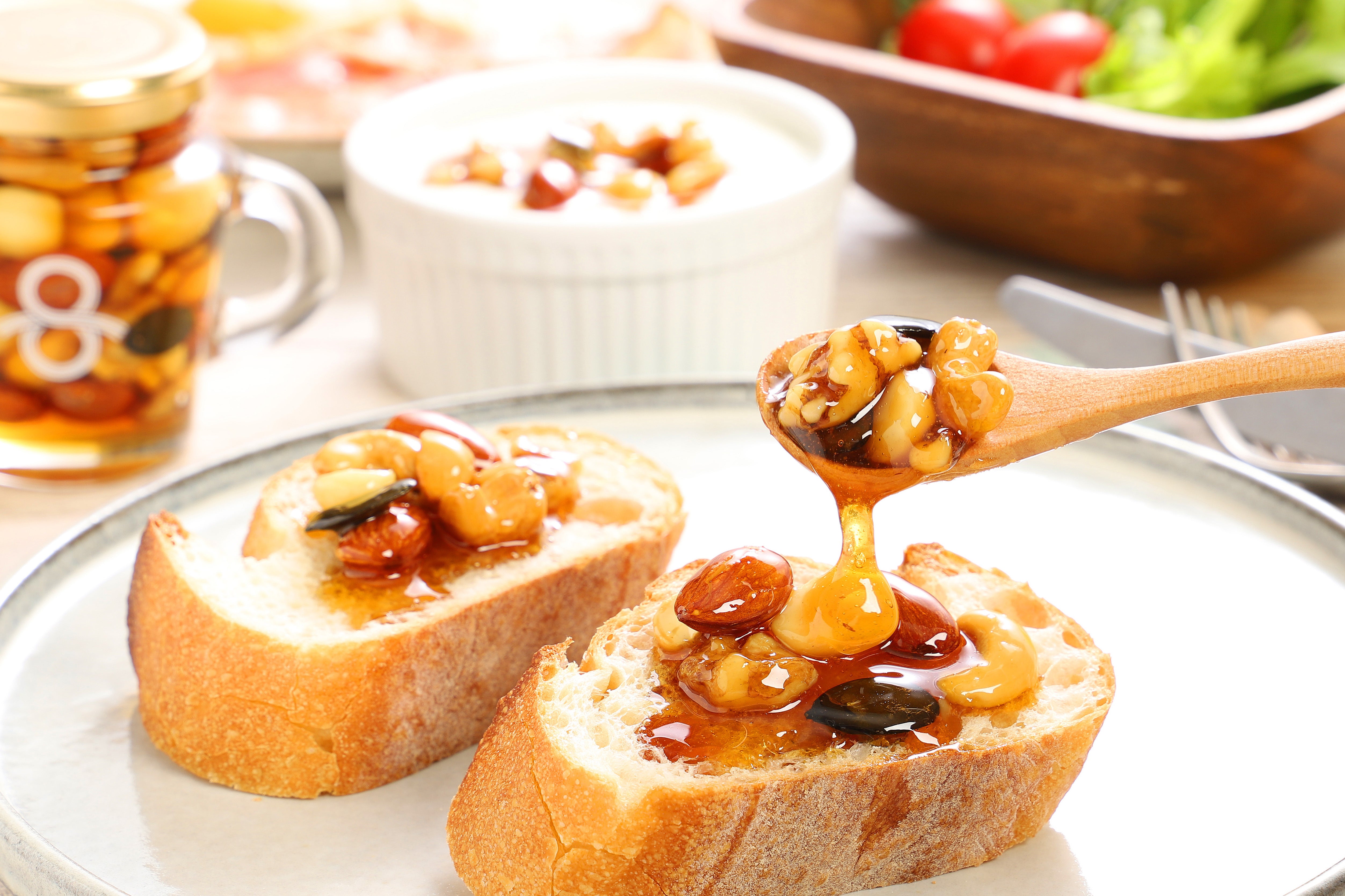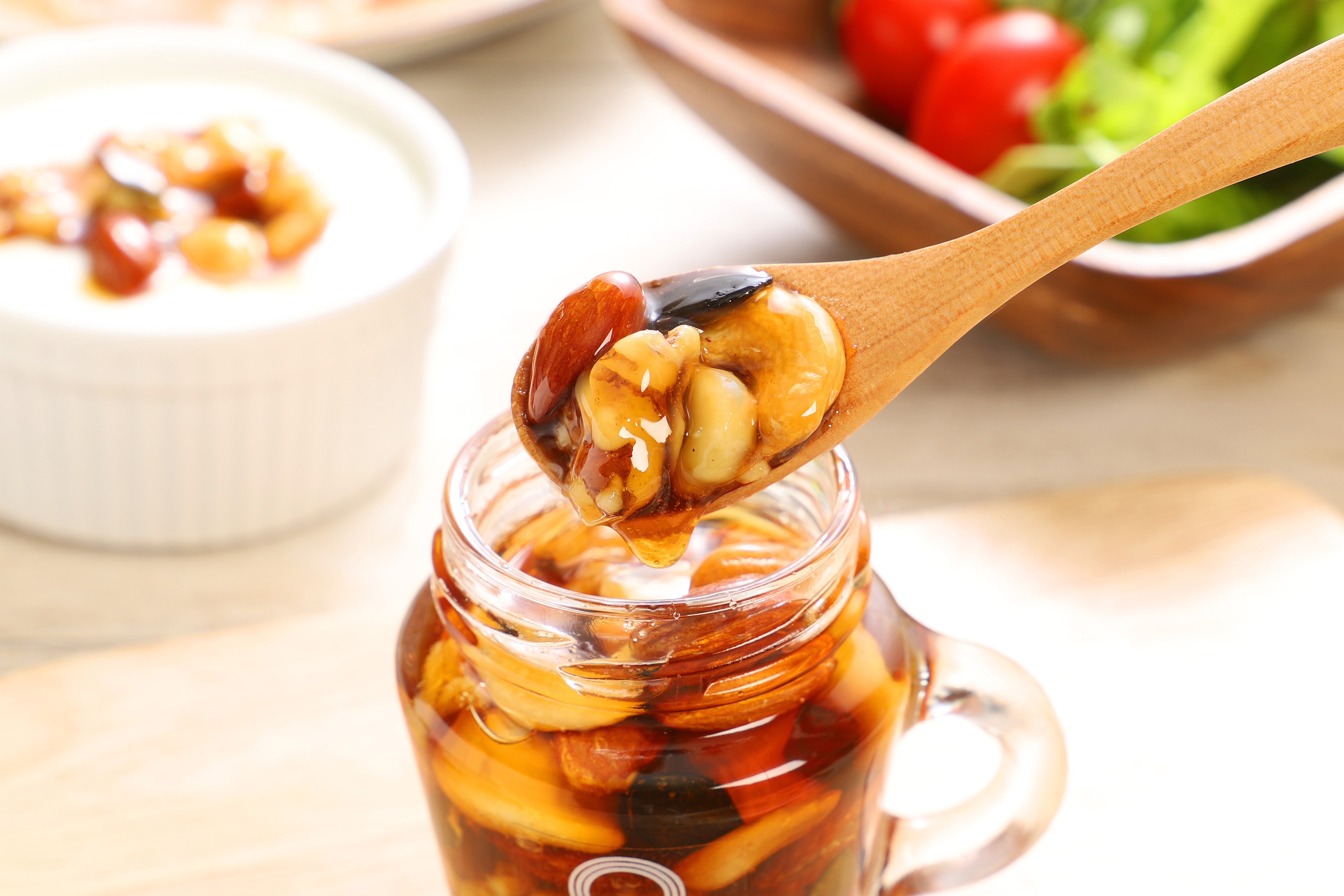 「はちみつナッツ」はフルーティーな味の蜂蜜と香ばしい5種のナッツの相性が抜群の商品です