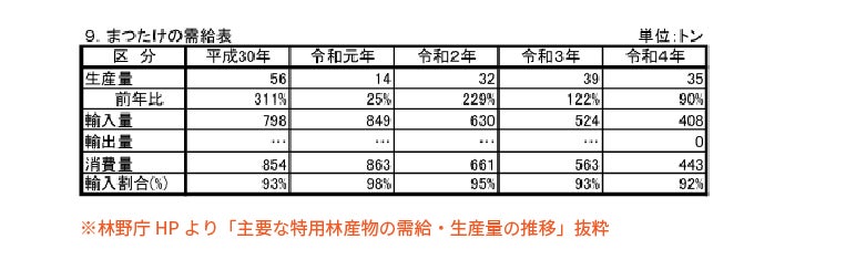 つまり今、私たちが食べている松茸のほとんどが外国からの輸入品なのです。