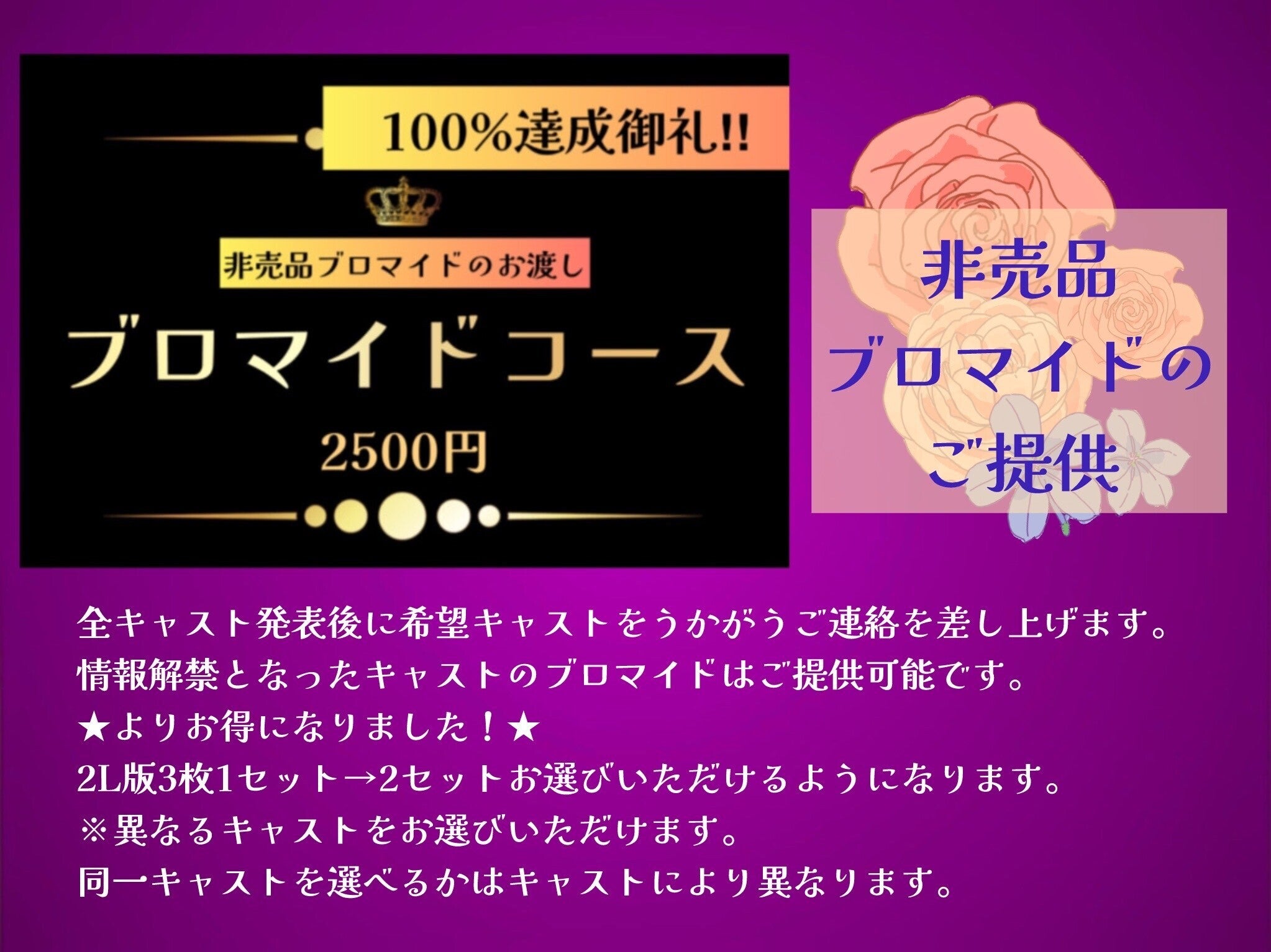 ・複数お申込みいただいた場合、1枚につき1名のキャストのサインが入ります(同一キャストもお選びいただけます)。ただし、1枚に複数名のキャストのサインをお入れすることはできません。