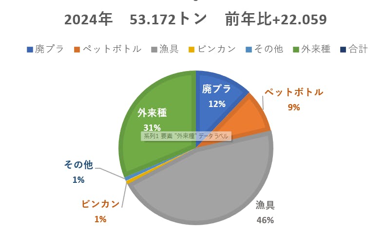 【漂着ゴミ年間回収総量】2023年総量31.113トン