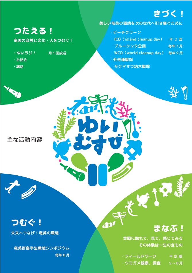 NPO法人ゆいむすび実行委員会は、奄美大島の豊かな自然の中で、環境問題を「自分事」として捉え、行動する人を育む活動をしています。