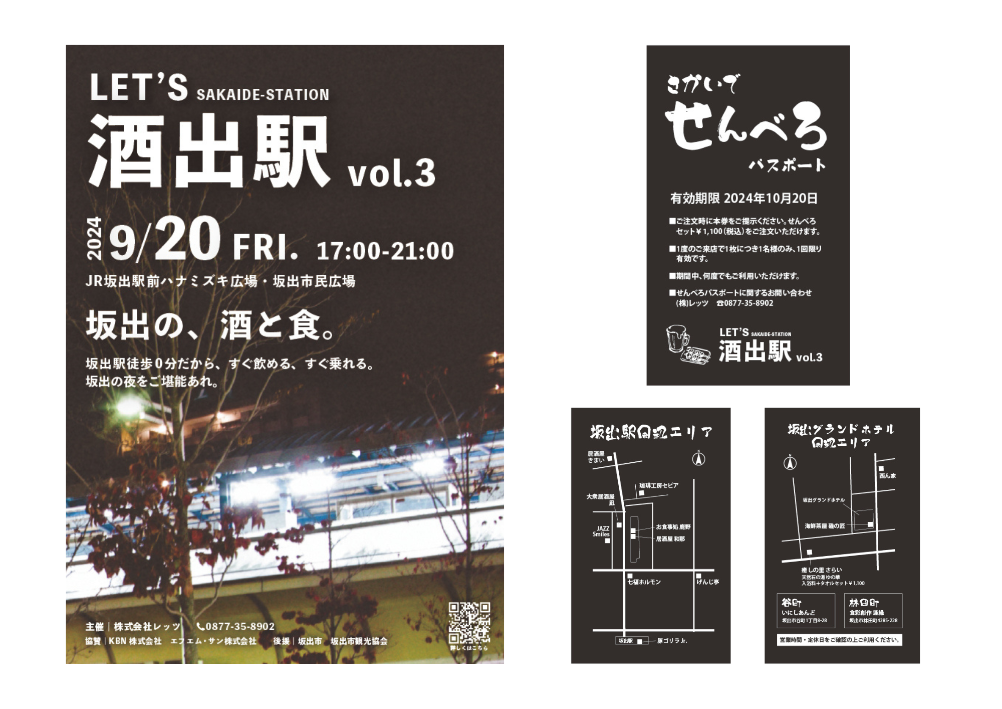 「LET’S酒出駅」は、週末の夜、人気の居酒屋や飲食店が坂出駅前に集結し、美味しいお酒と料理が楽しめる立ち飲みイベントです。