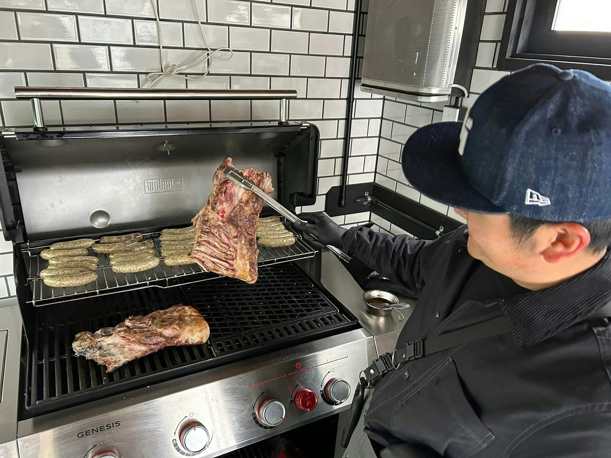 ○ガスグリルのポテンシャルがすごい! 今回のフードトラックの目玉である大型ガスグリル。 実際に使ってみると、これまでのコンパクトグリルとは比にならない火力! 30人分のBBQケータリングも、この1台でこなせそうです(笑)
