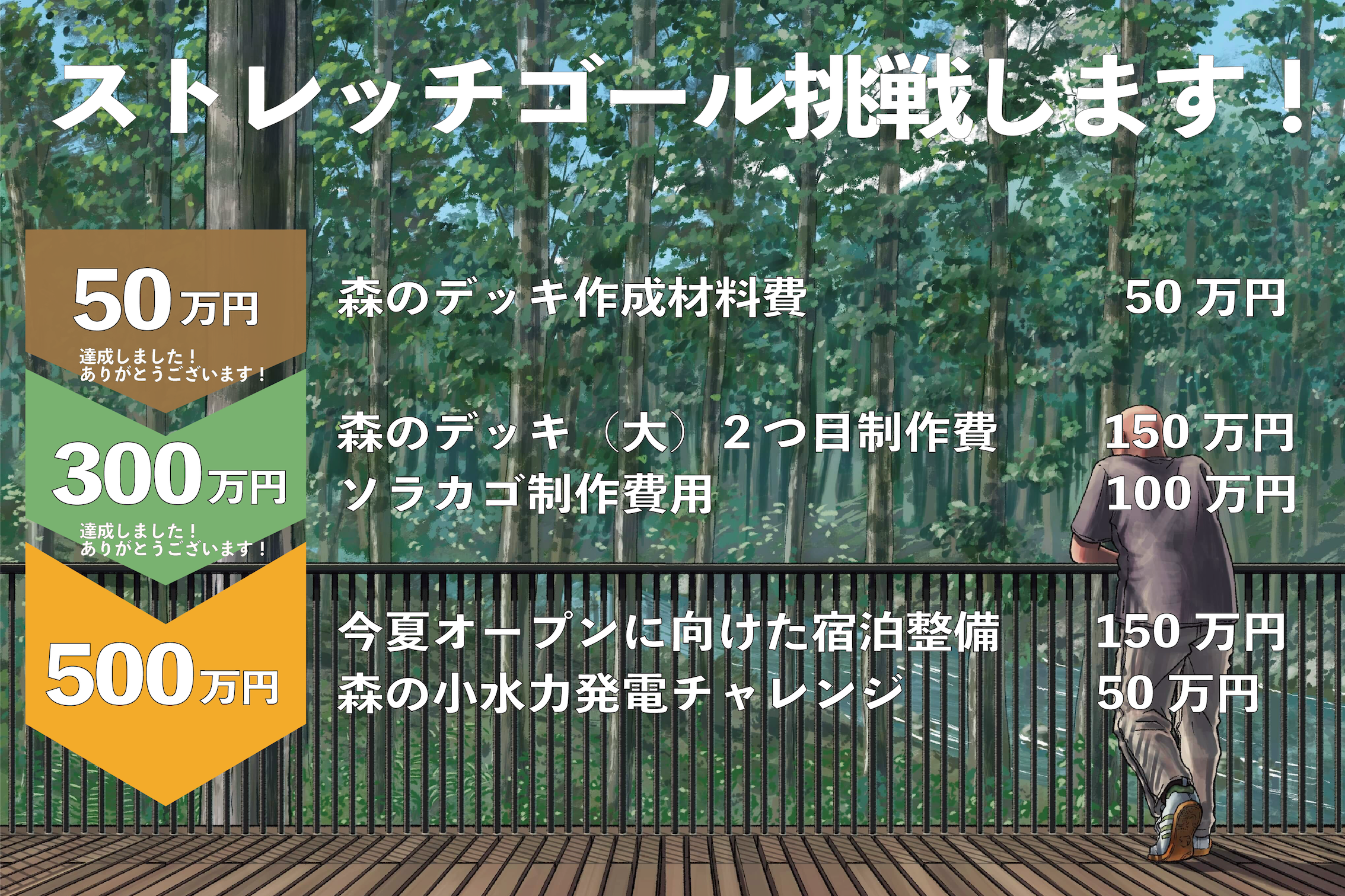 本当に本当に本当にありがとうございます!!森にデッキ2つができ、そしてソラカゴもでき、皆様の応援と共に森に秘密基地が作られていっております・・・!そして、